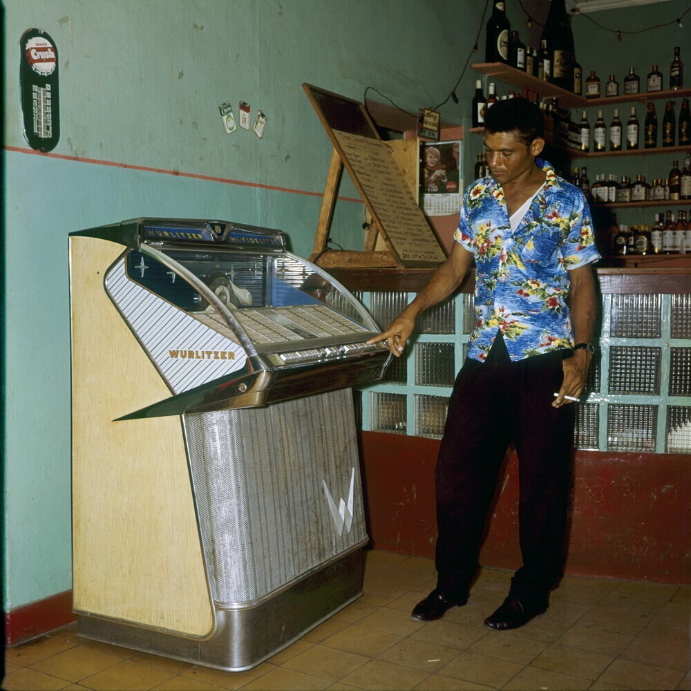 Man bij een jukebox