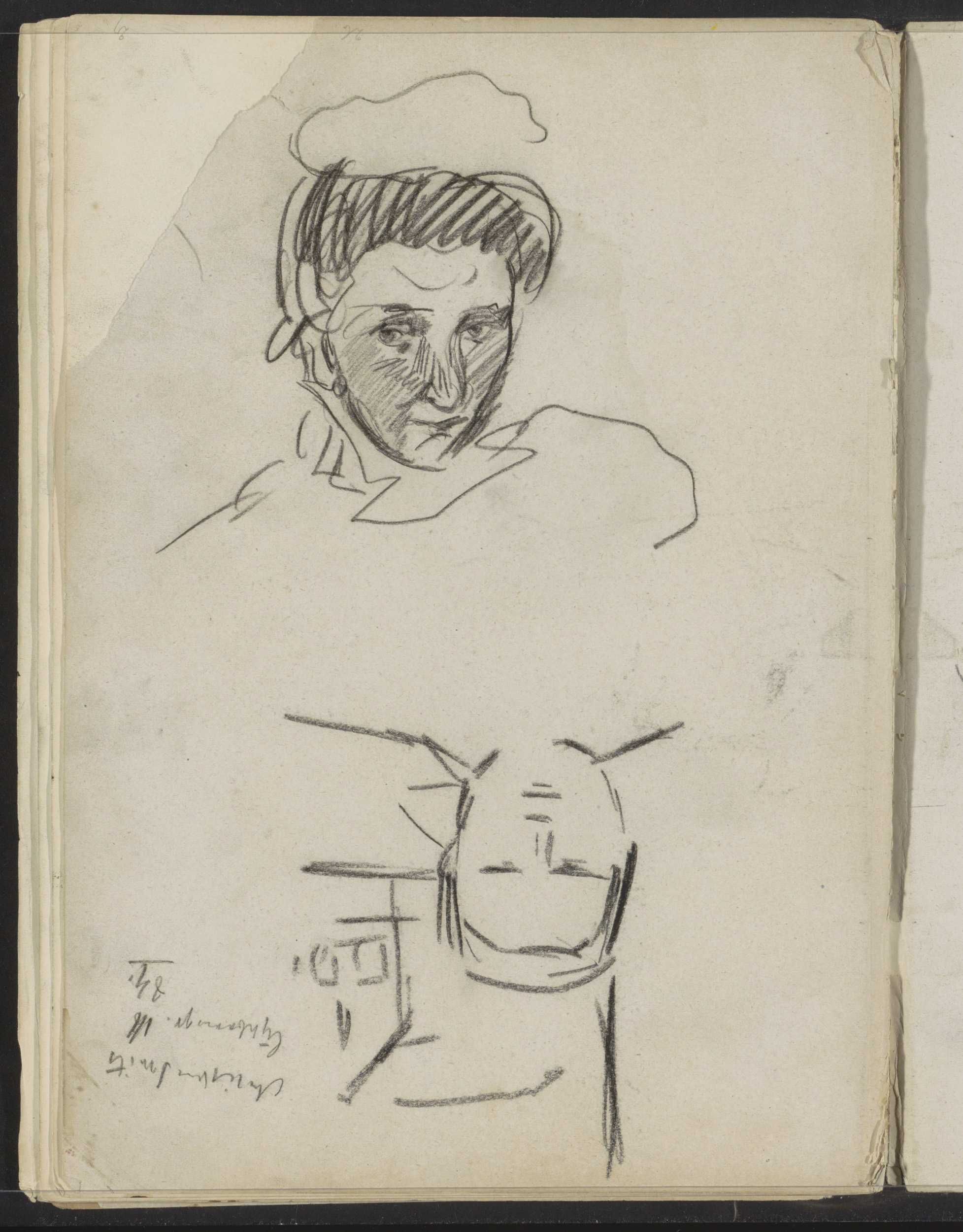 Abklatsch van de krijttekening op blad 1 verso