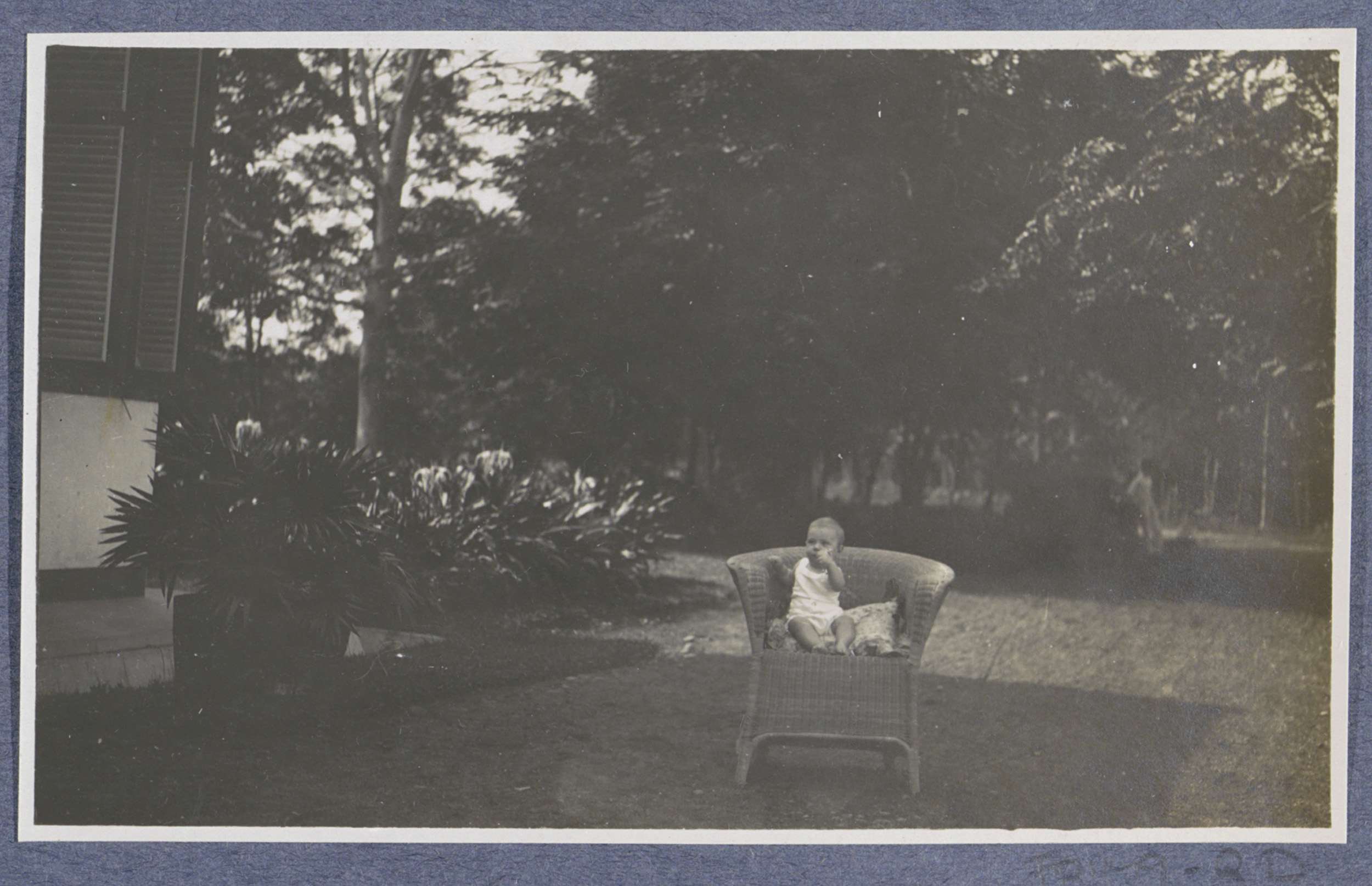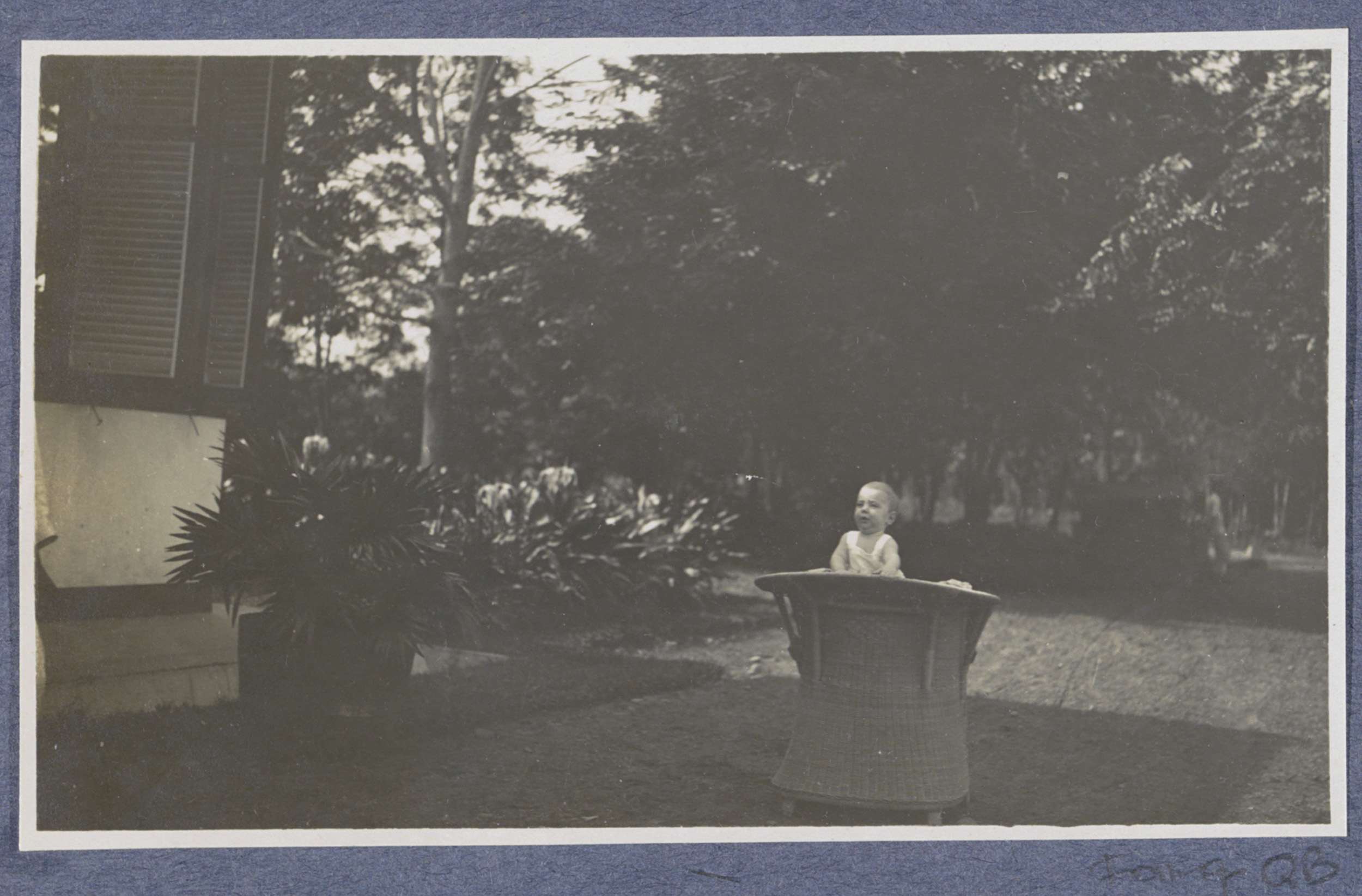 Kind van de familie Jelgerhuis-Swildens in een tuins...