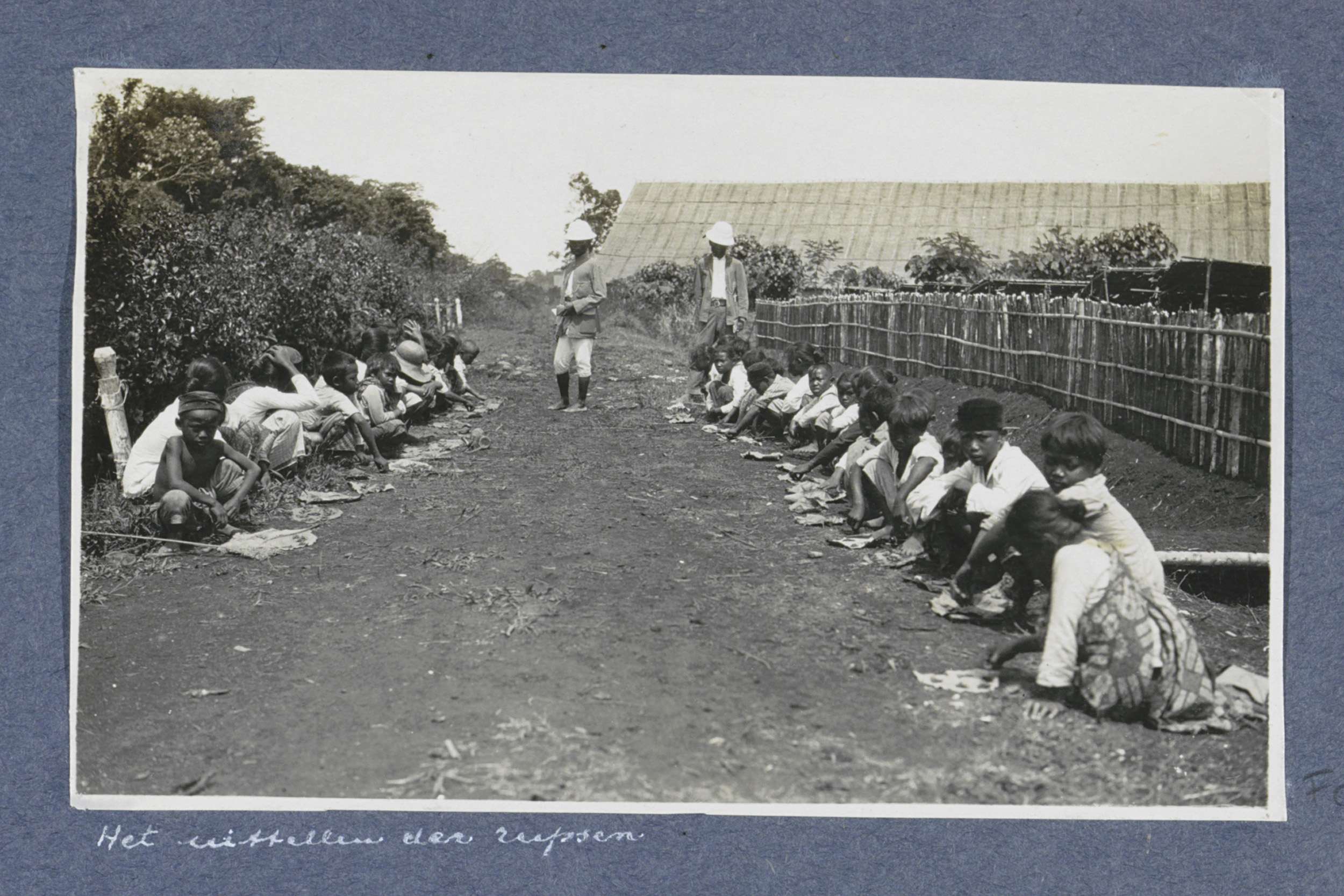 Kinderen tellen aantal gevangen rupsen op plantage o...
