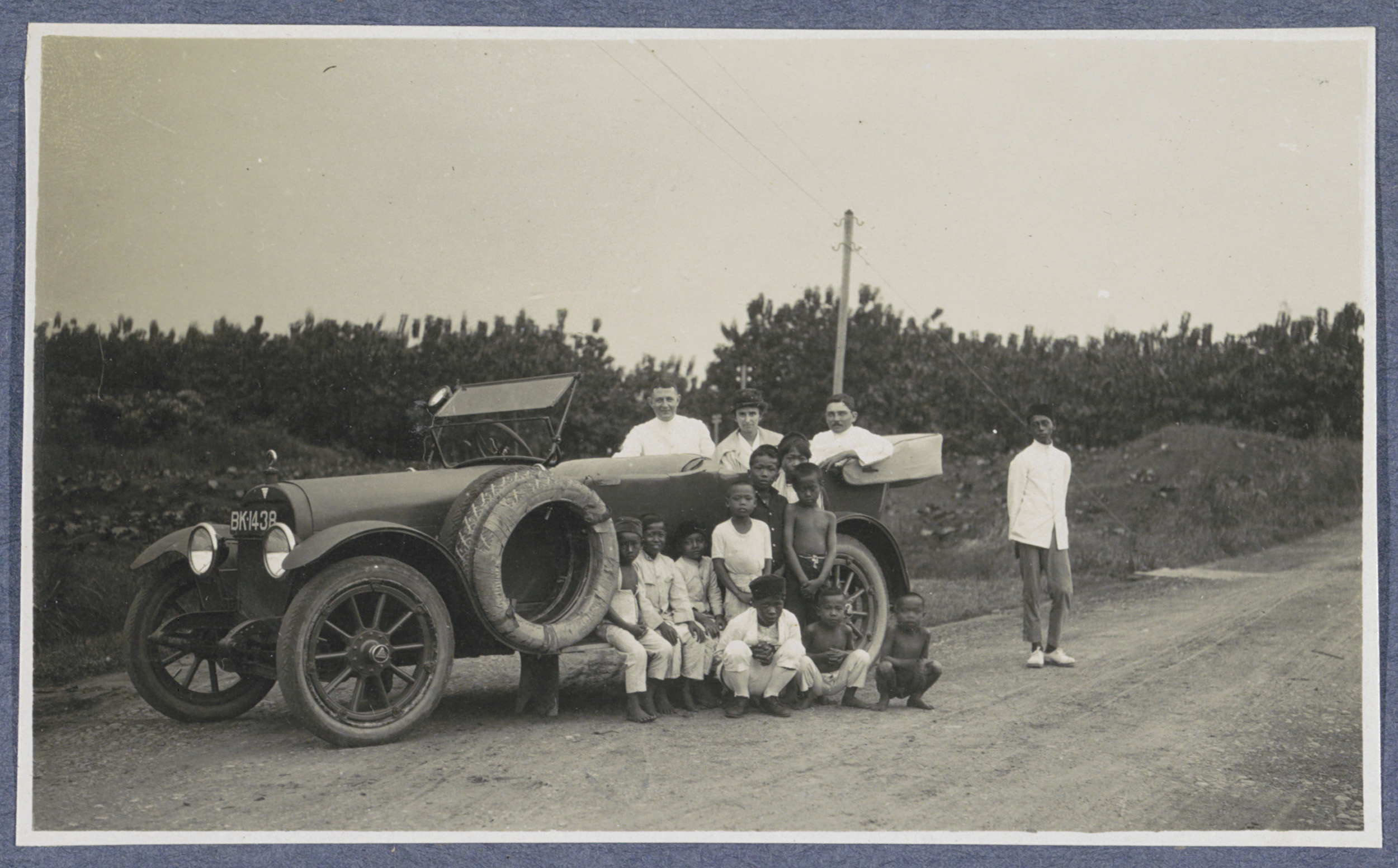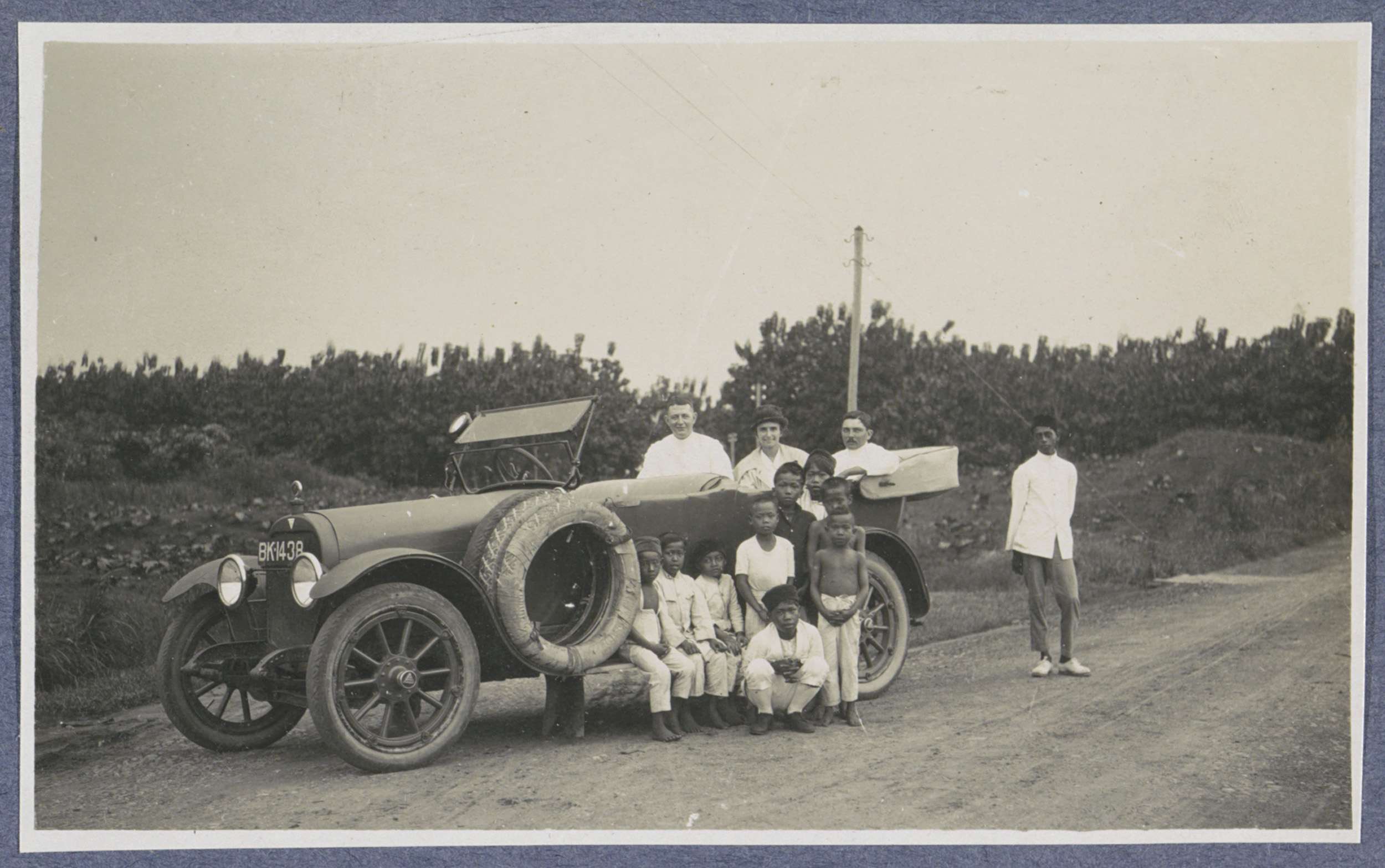 Auto met 'John Lanting', 'C. Kroese', vrouw en kinde...