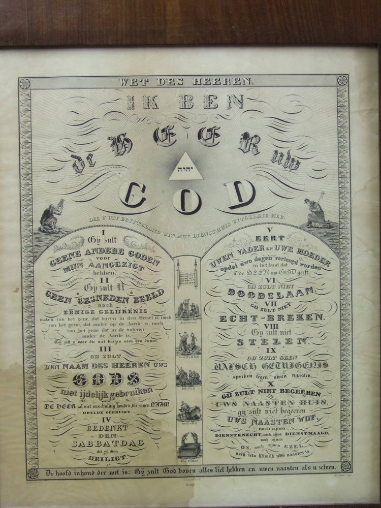 gebed des Heeren, gedrukt op papier, in mahonie lijs...
