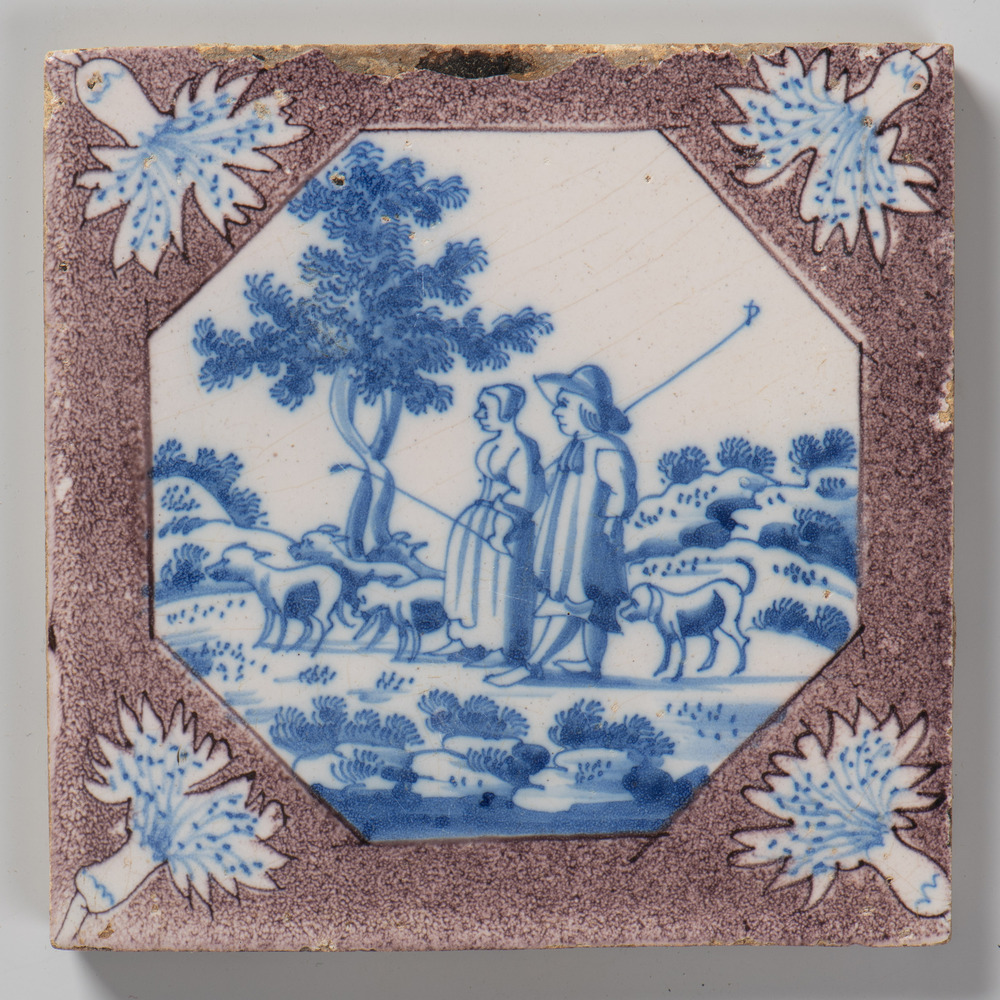 tegel van keramiek met tinglazuur, voorstellende: Lo...