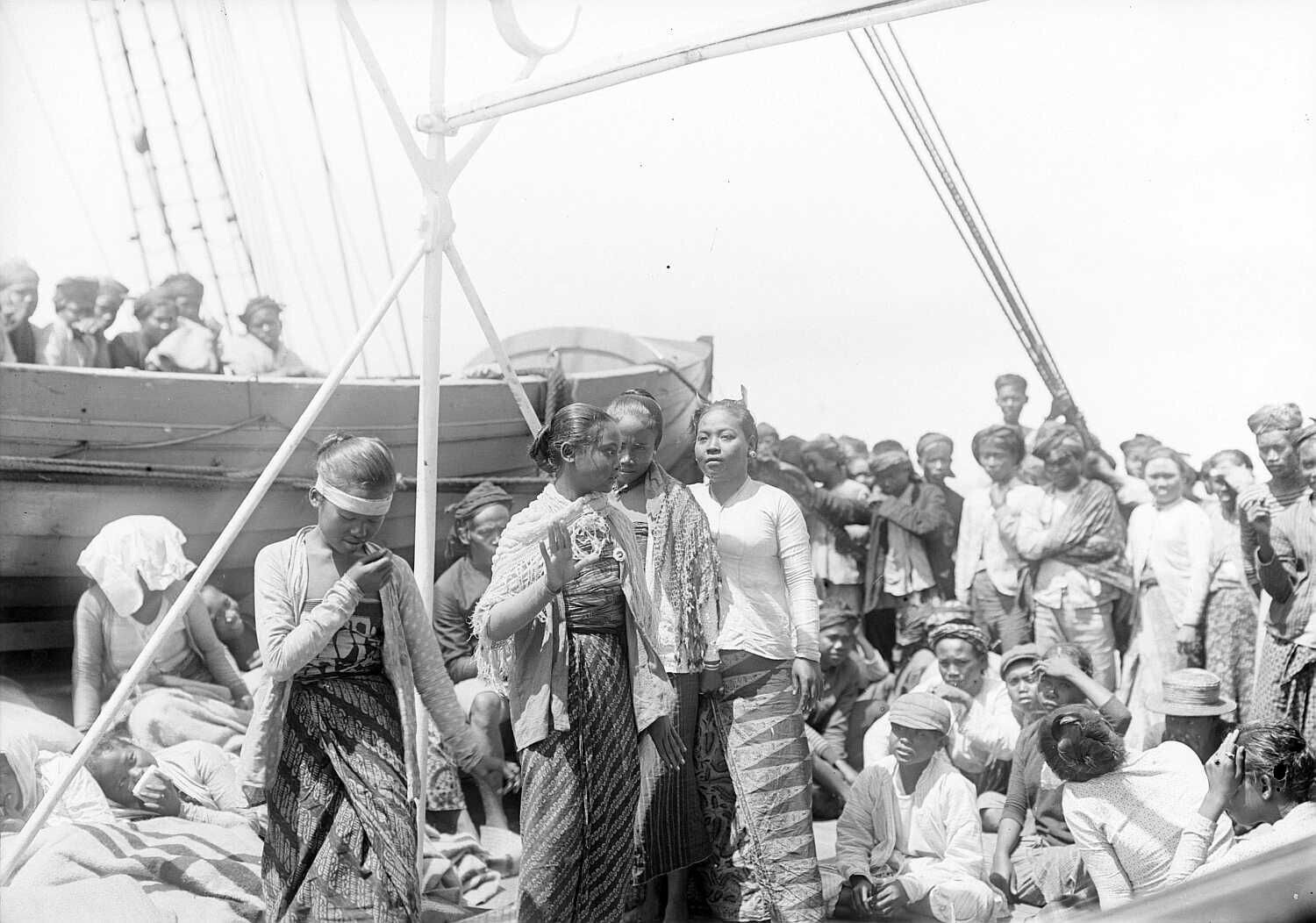 Dansende Javaanse immigranten aan boord van de 'Prin...