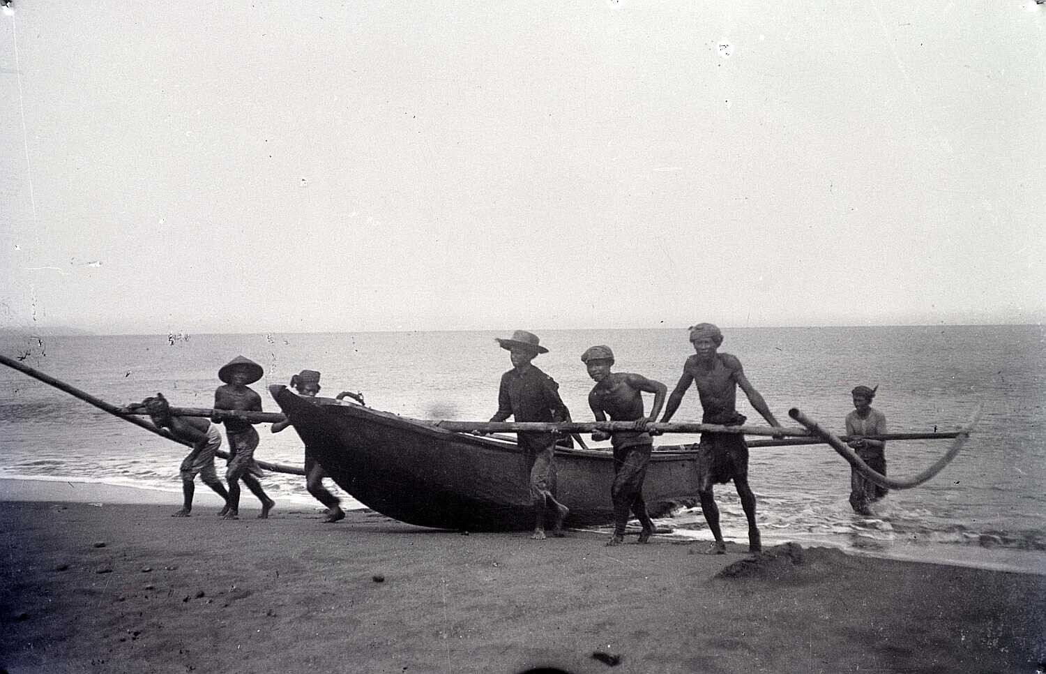 Madurese prauw in Pasar Ikan bij de Uitkijk, Batavia