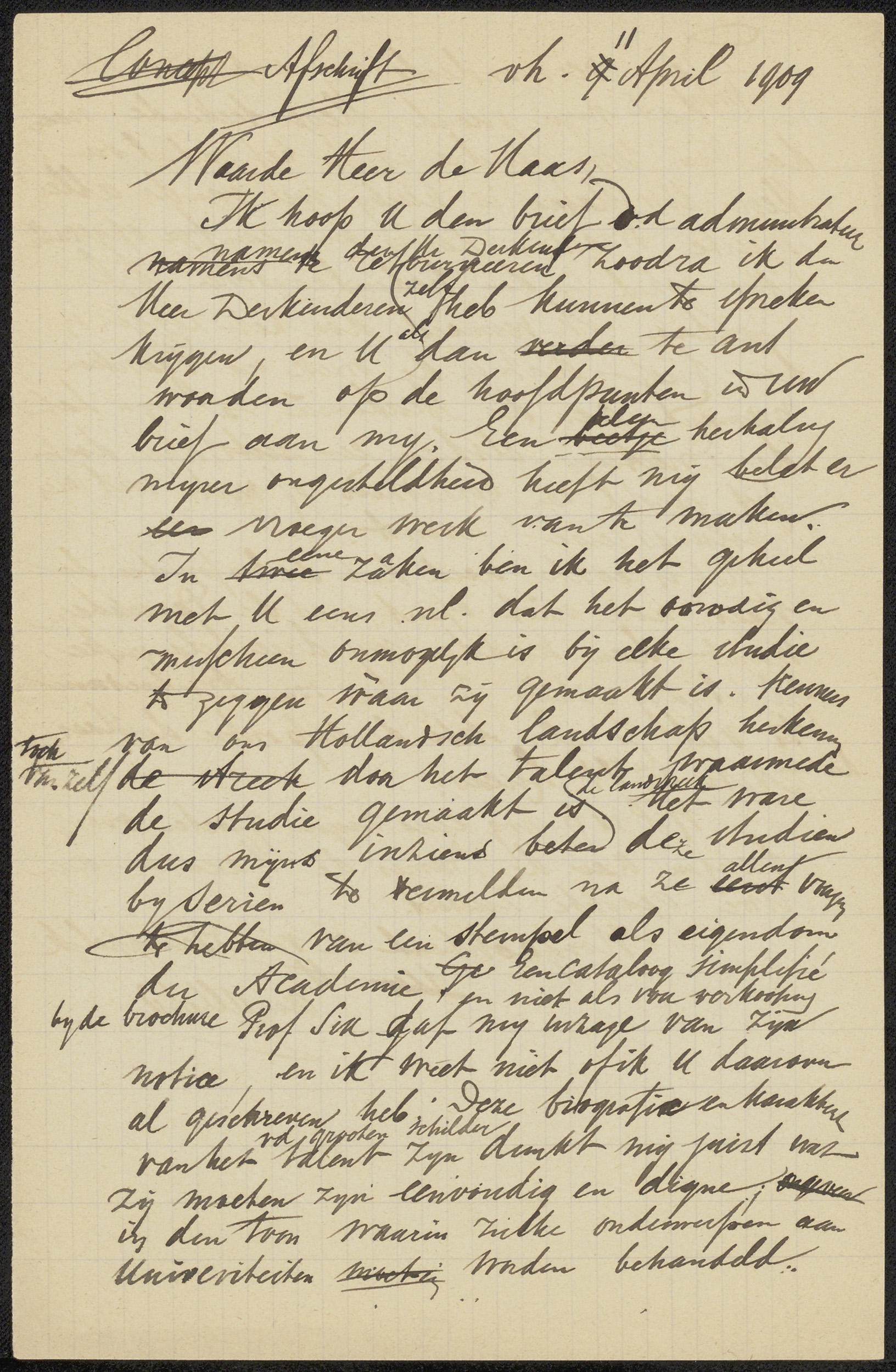 Brief aan de heer De Haas