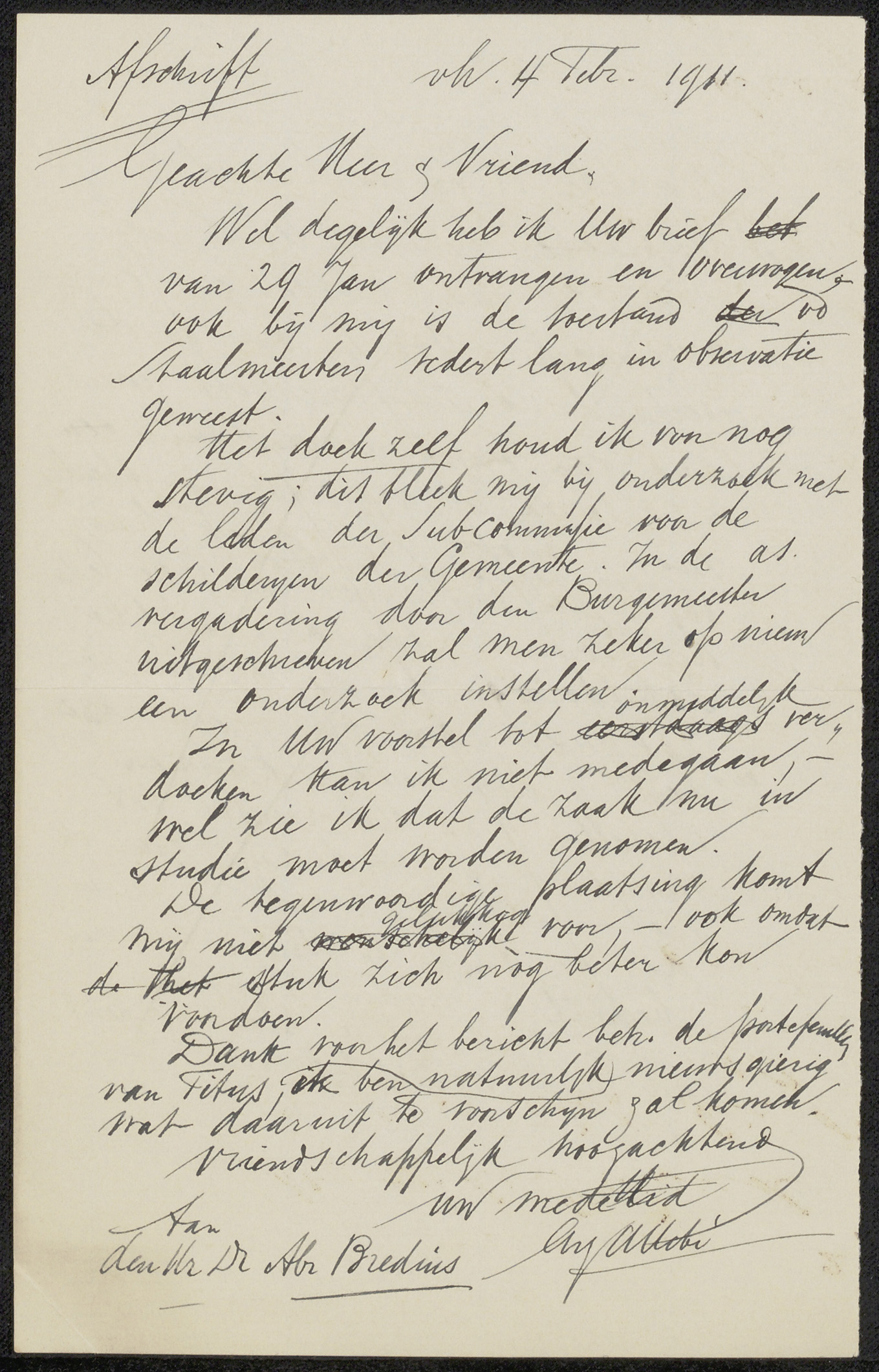 Brief aan Abraham Bredius