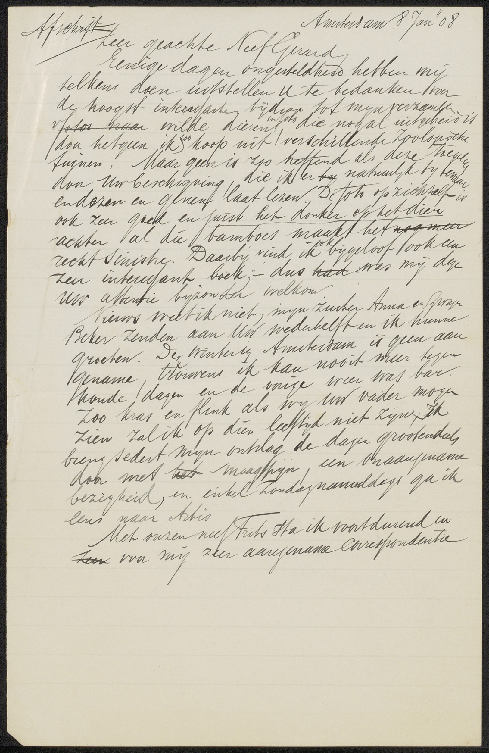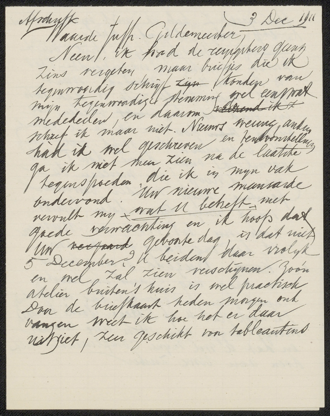 Brief aan Anne Antoinette Weber-Van Bosse