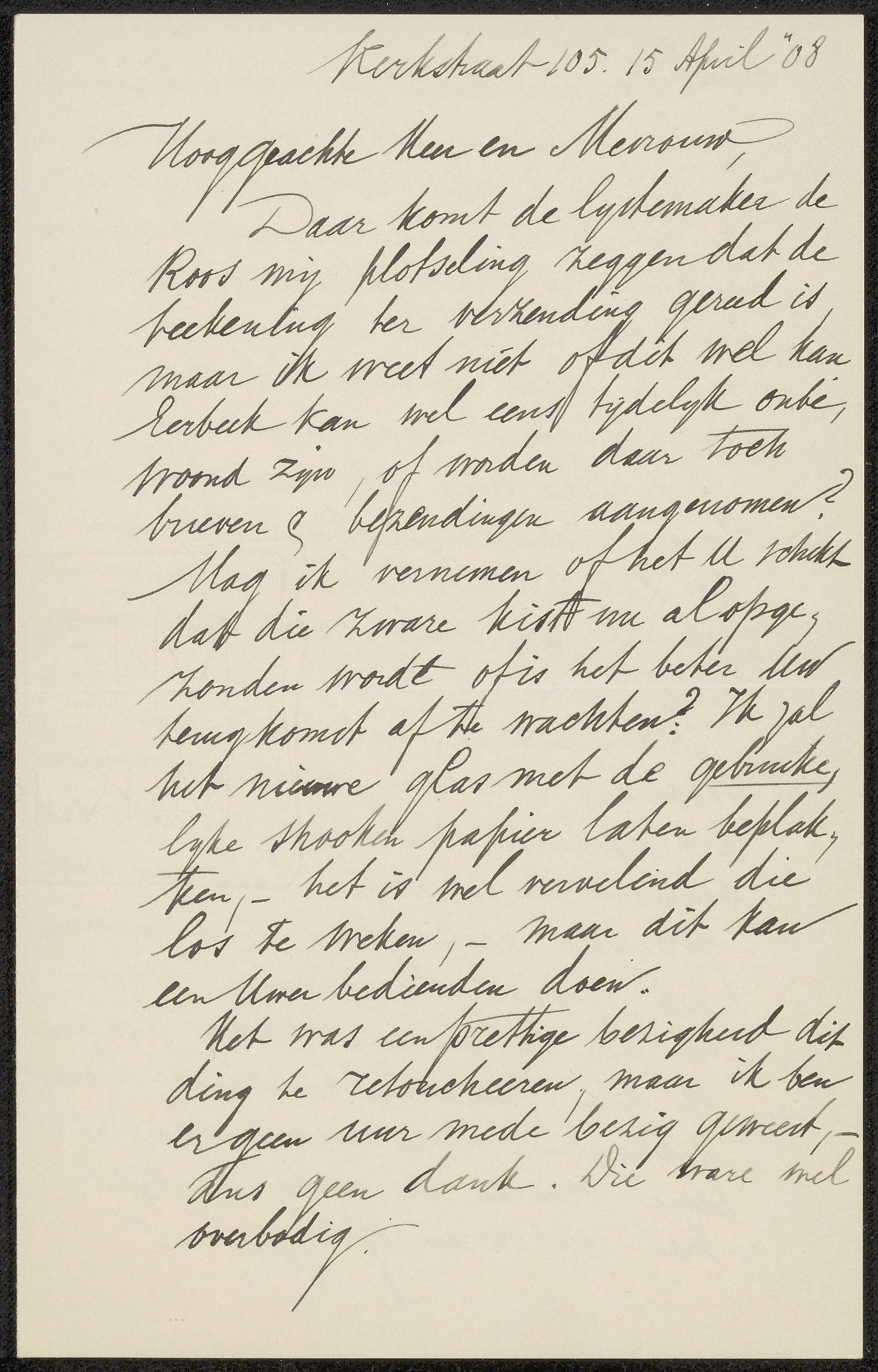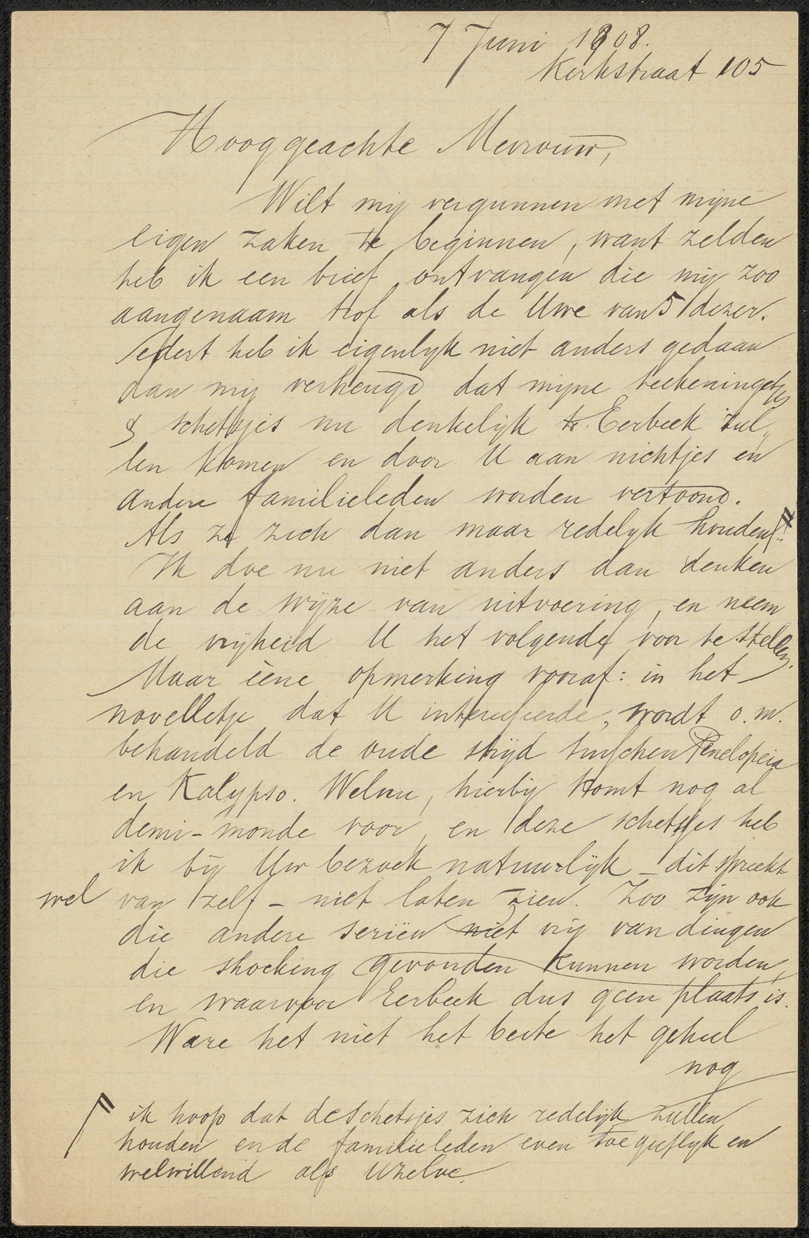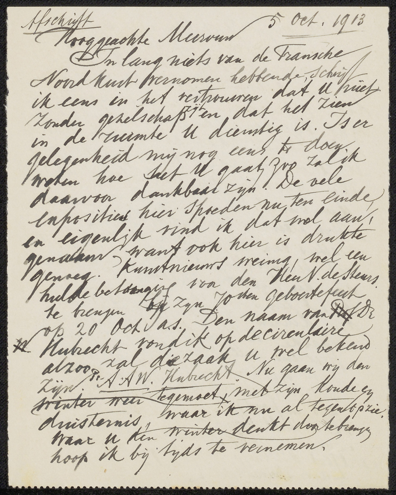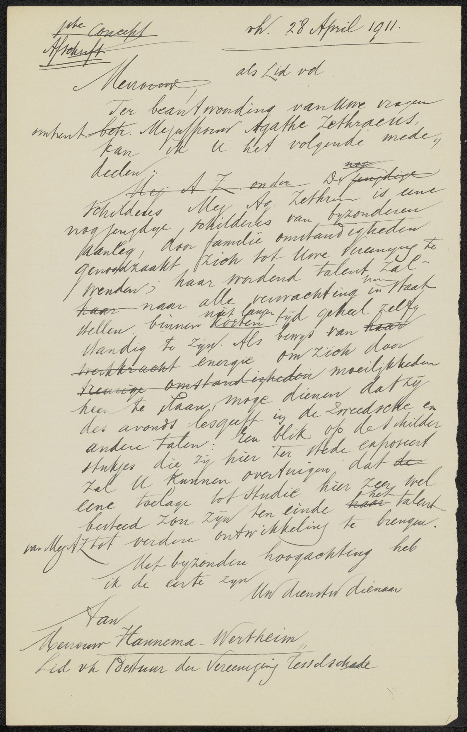 Brief aan mevrouw Hannema-Wertheim