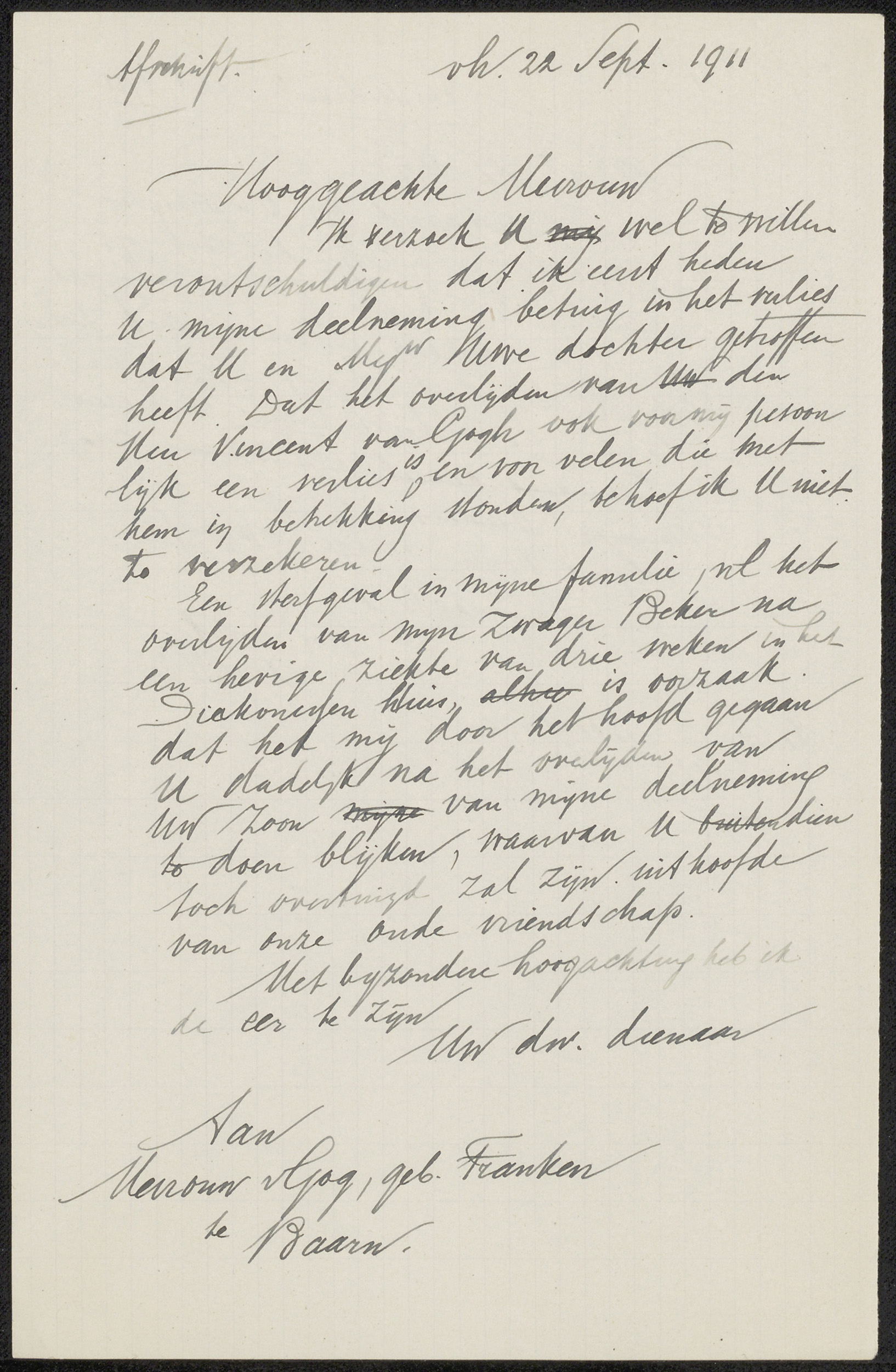 Brief aan Johanna van Gogh-Franken en brief aan de h...