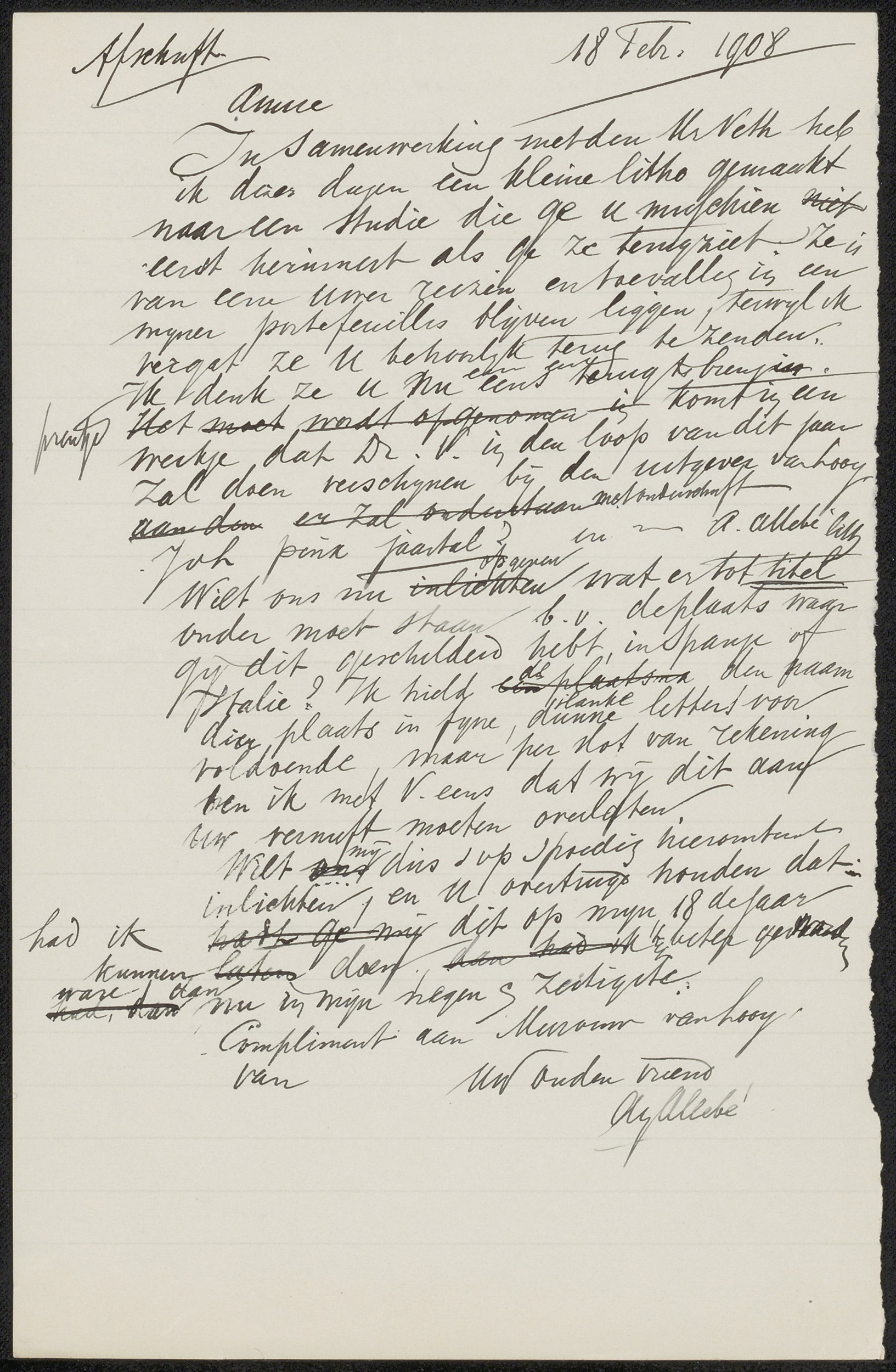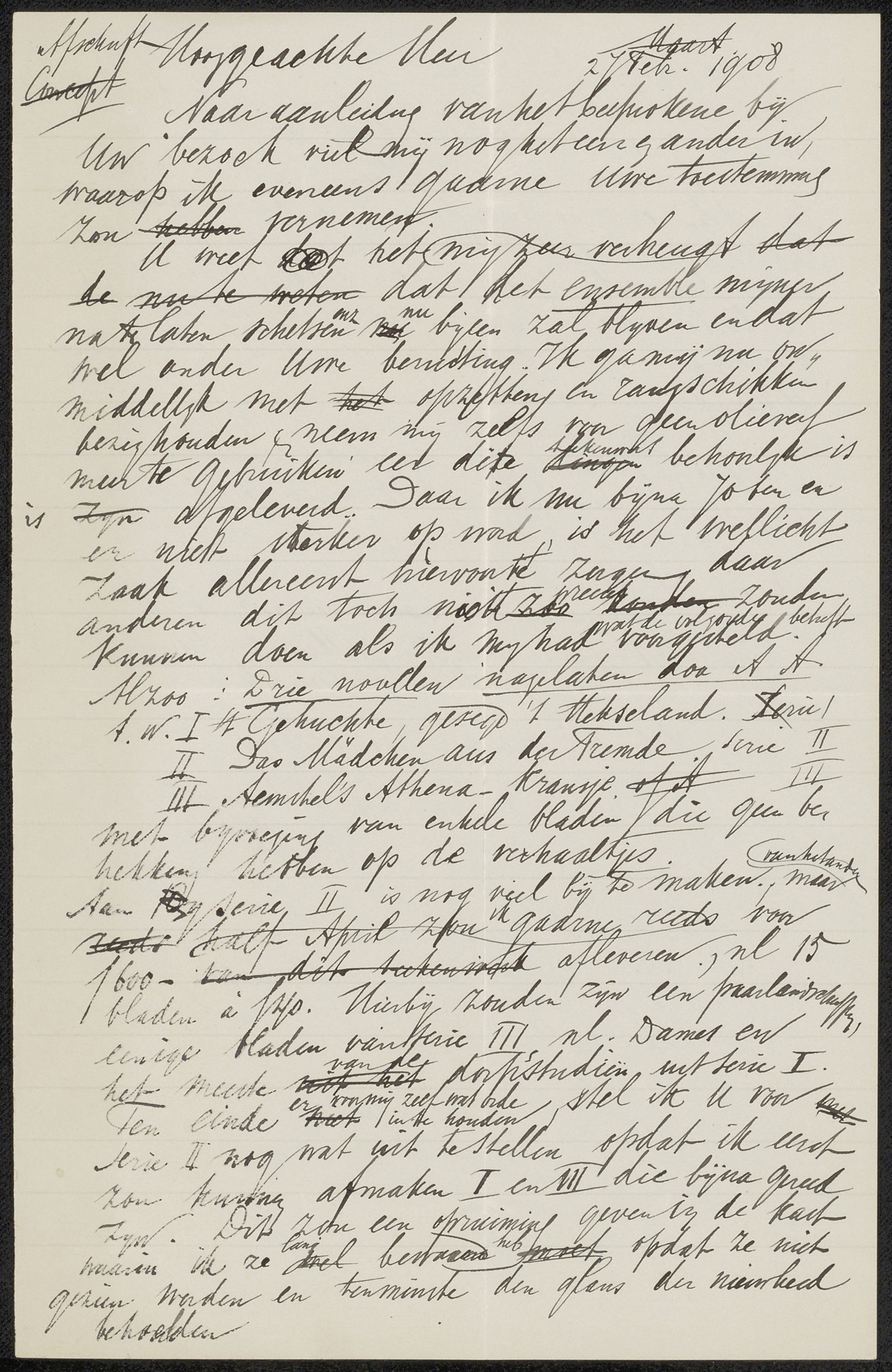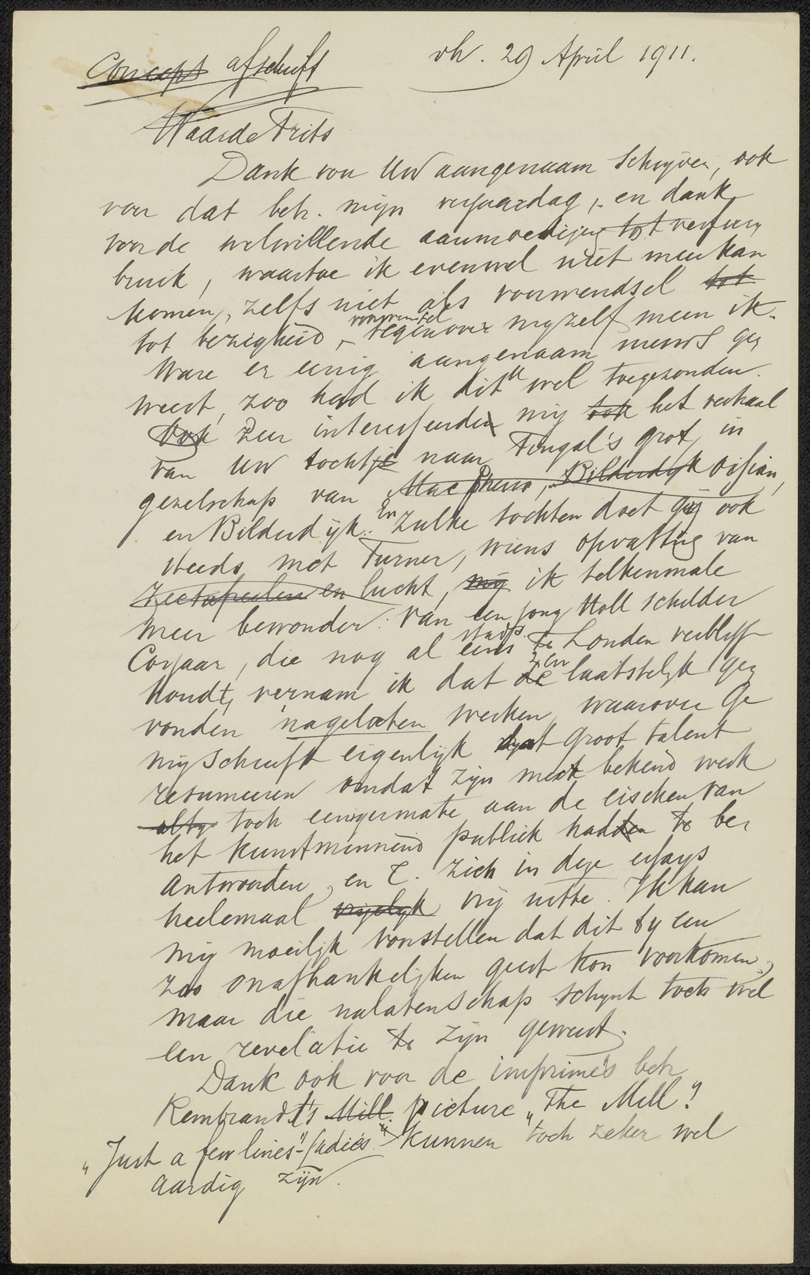 Conceptbrief aan Jan Veth en conceptbrief aan Johann...