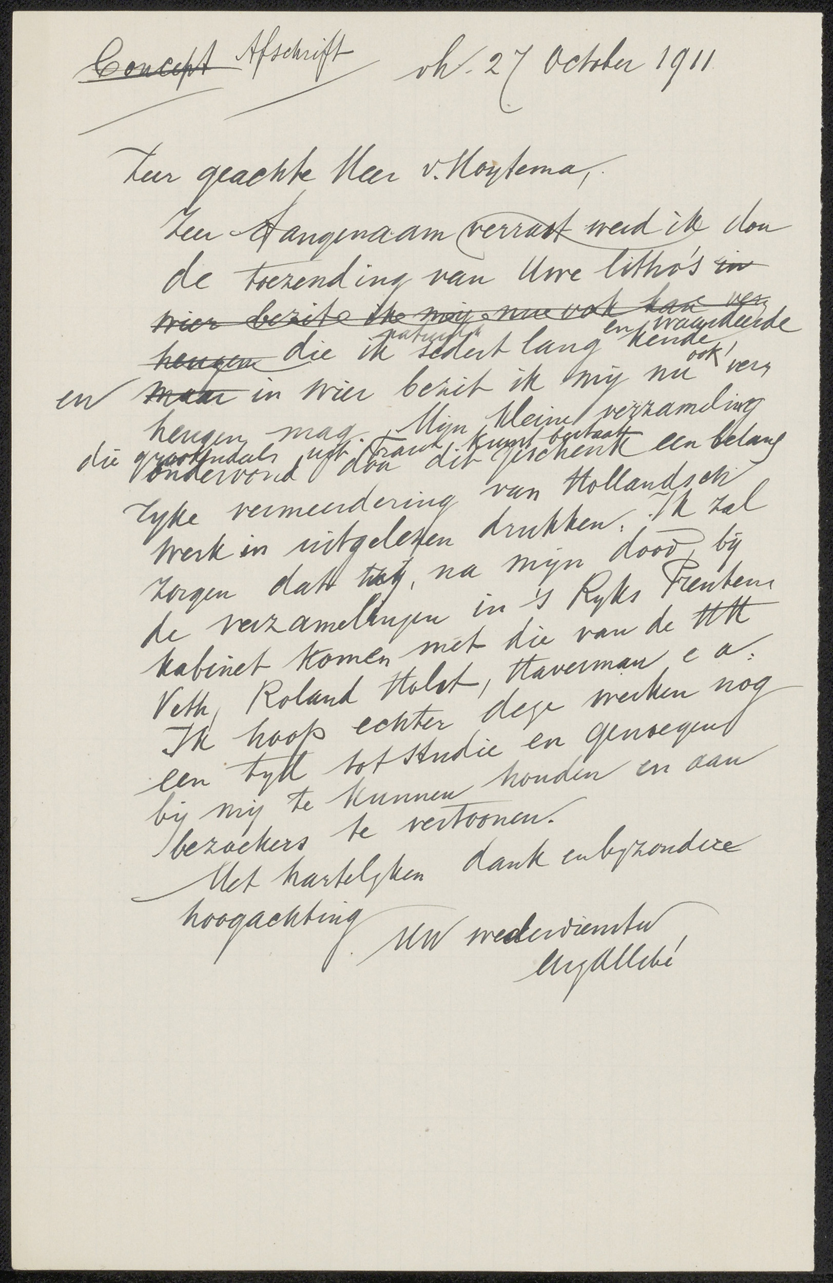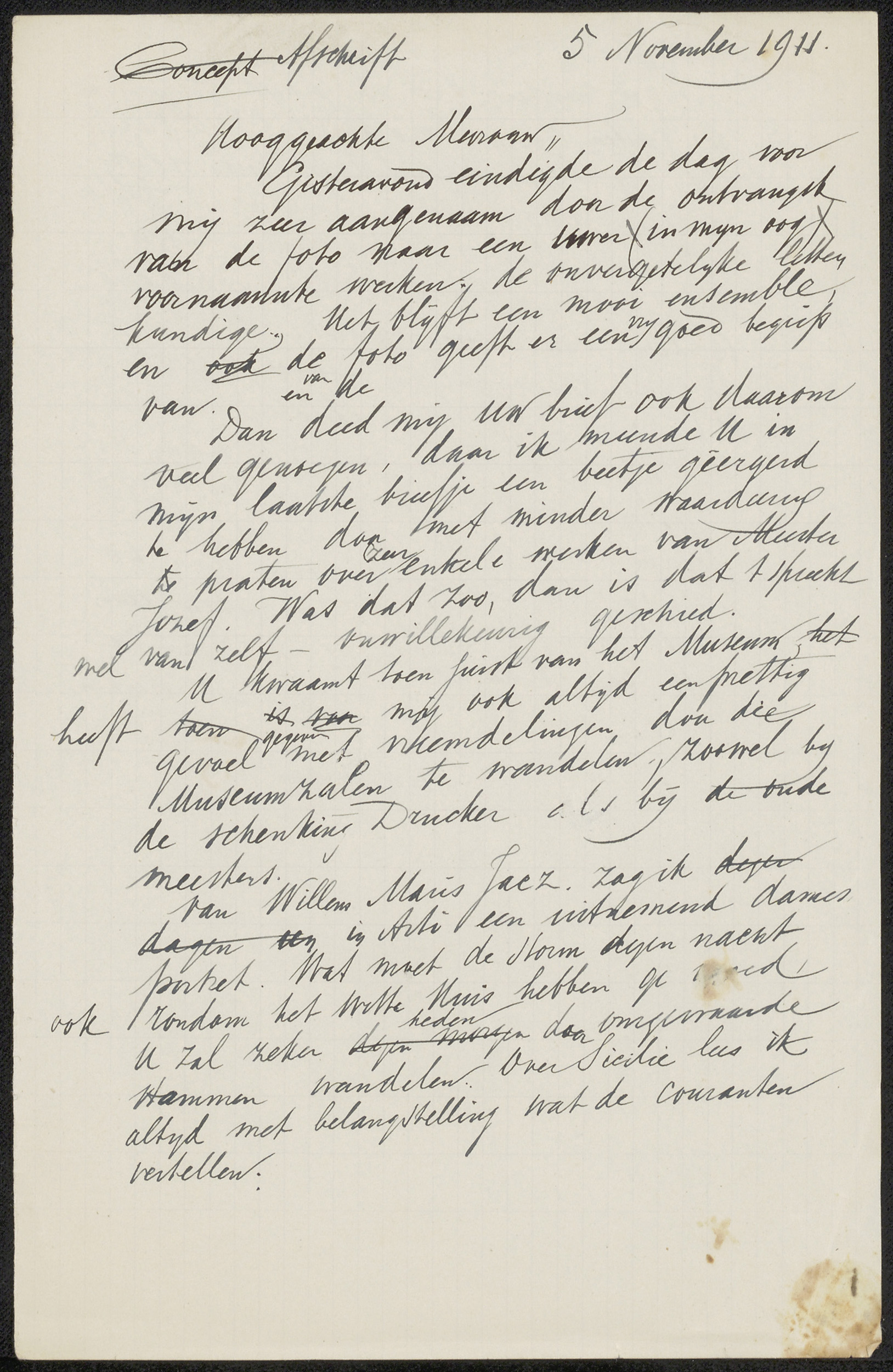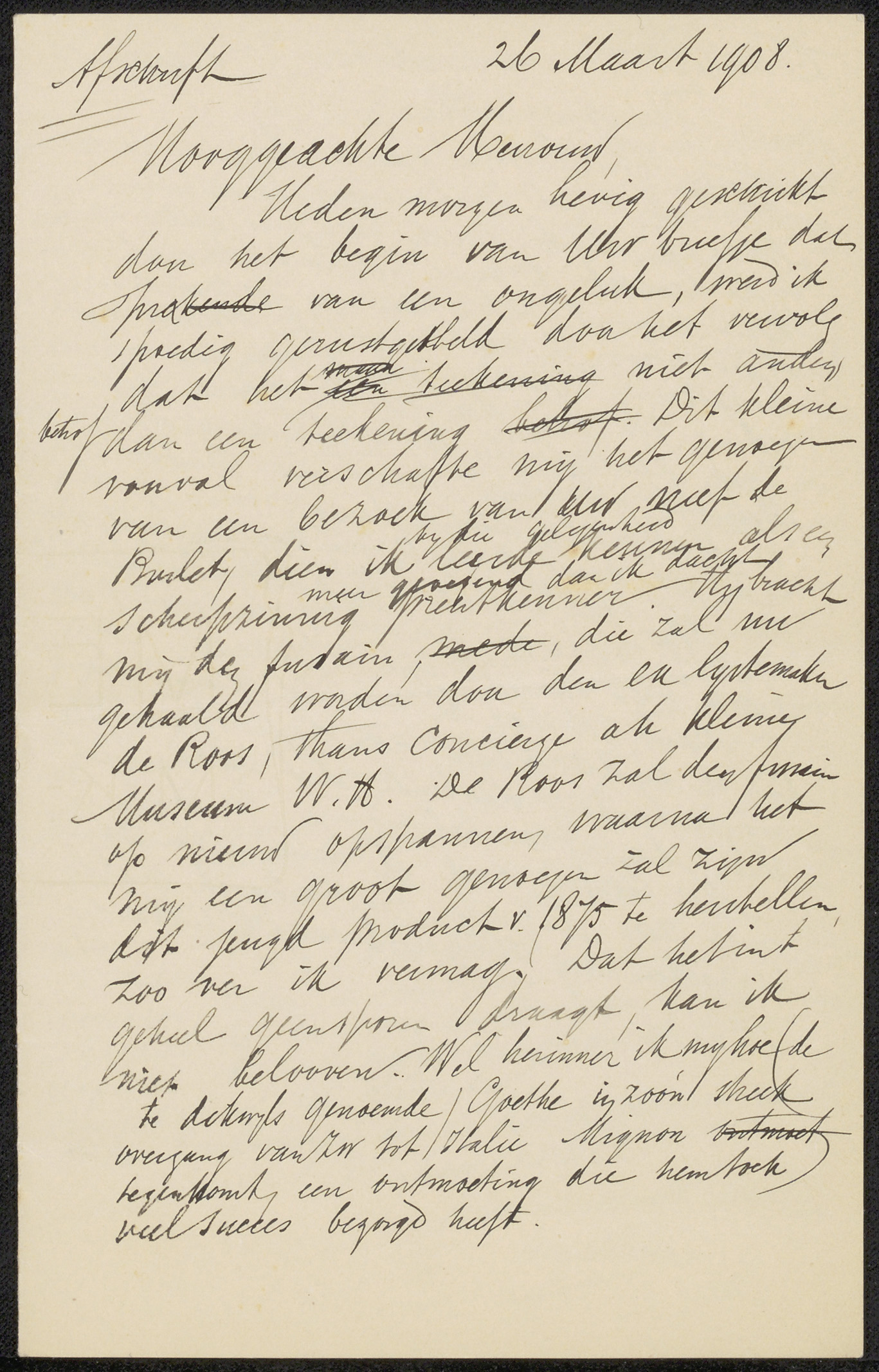 Conceptbrief aan jonkheer Victor Eugène Louis de Stuers