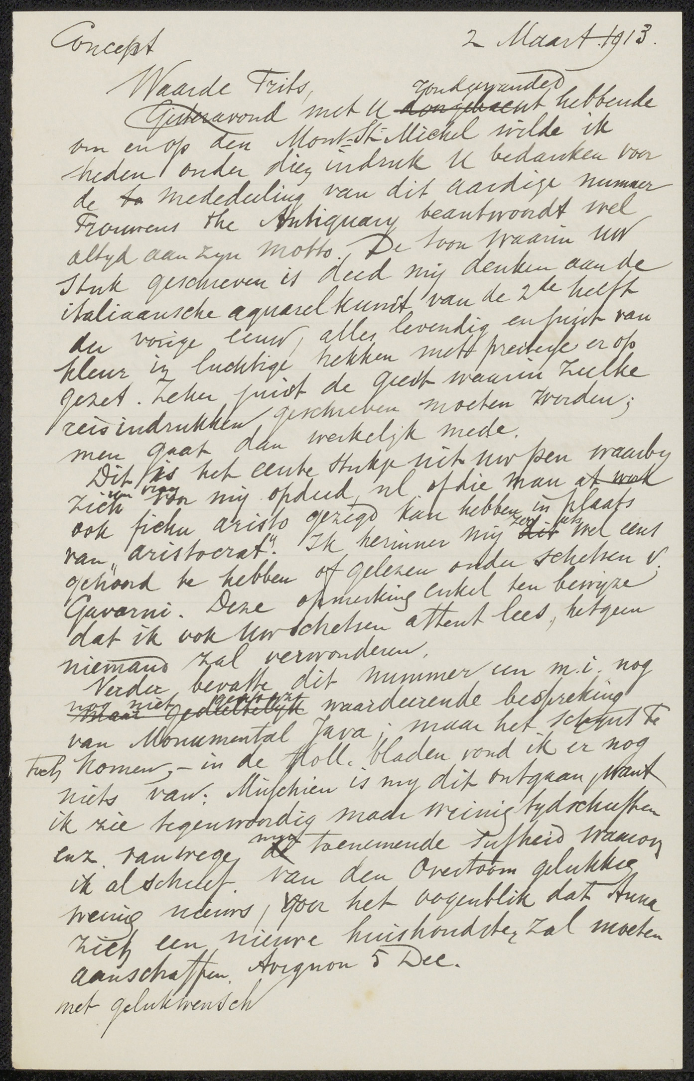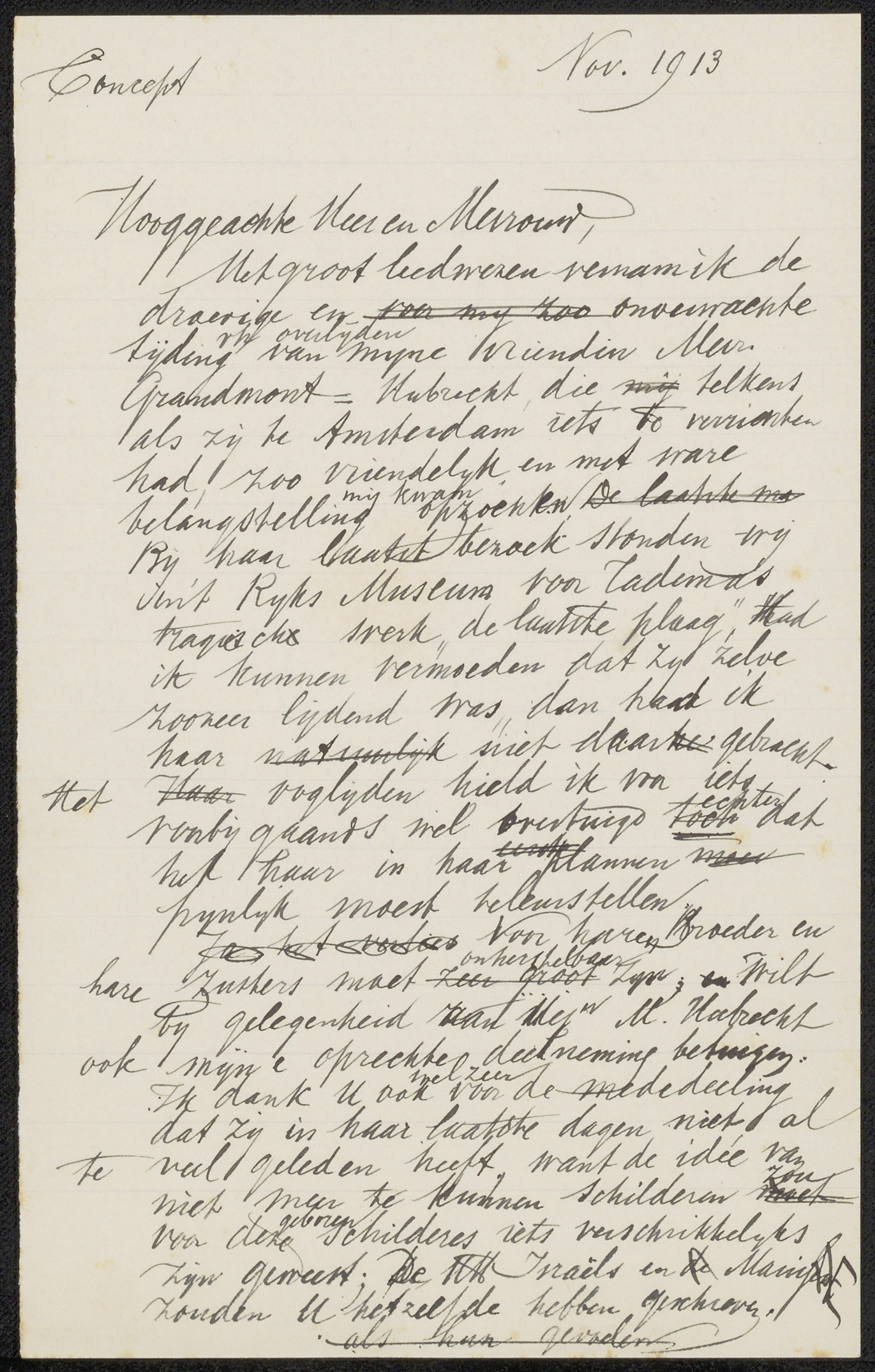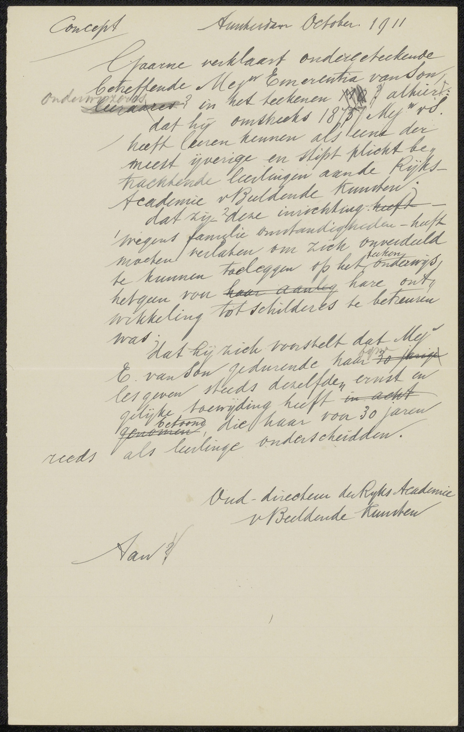 Conceptbrief aan jonkheer Victor Eugène Louis de Stuers