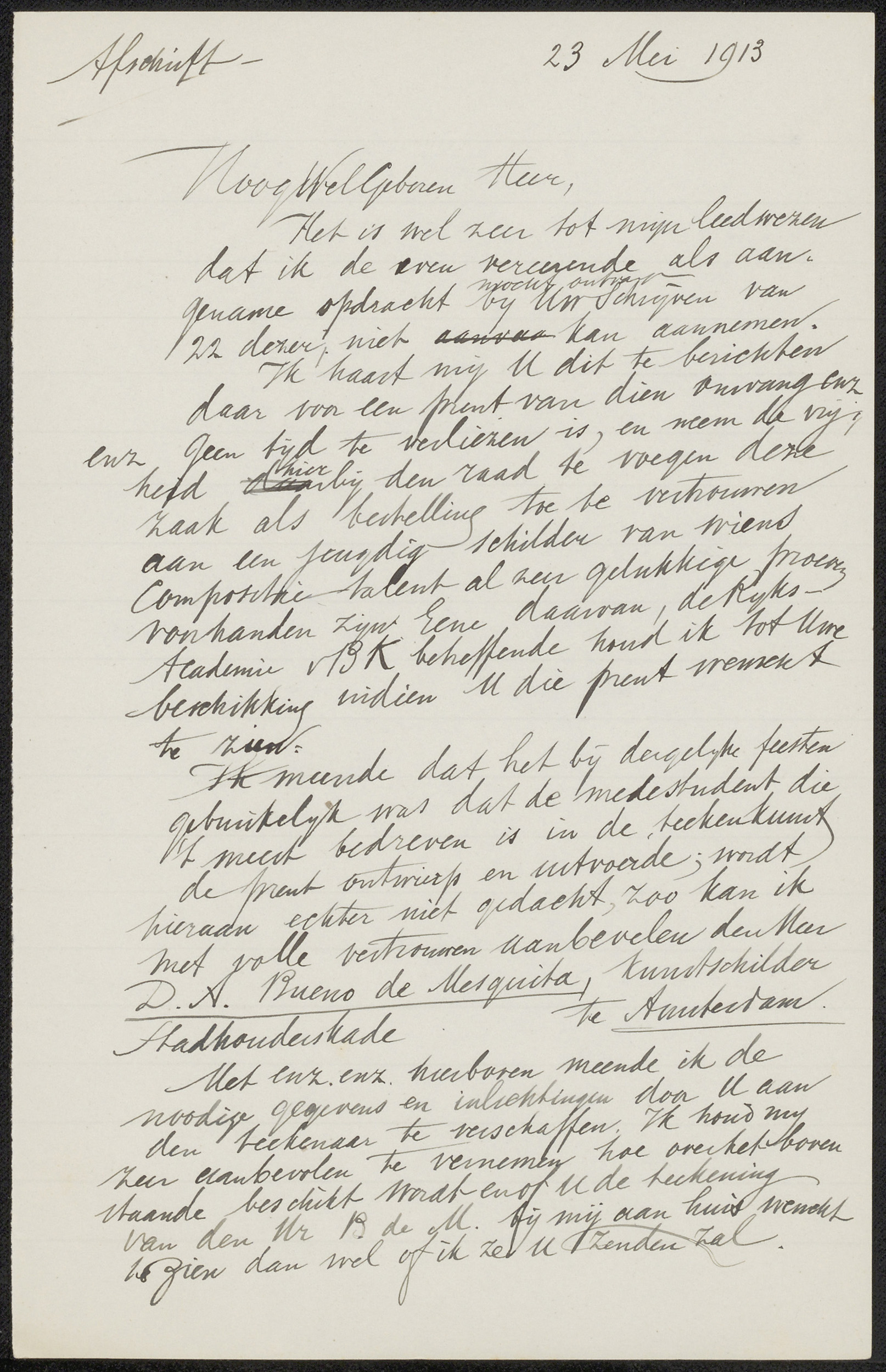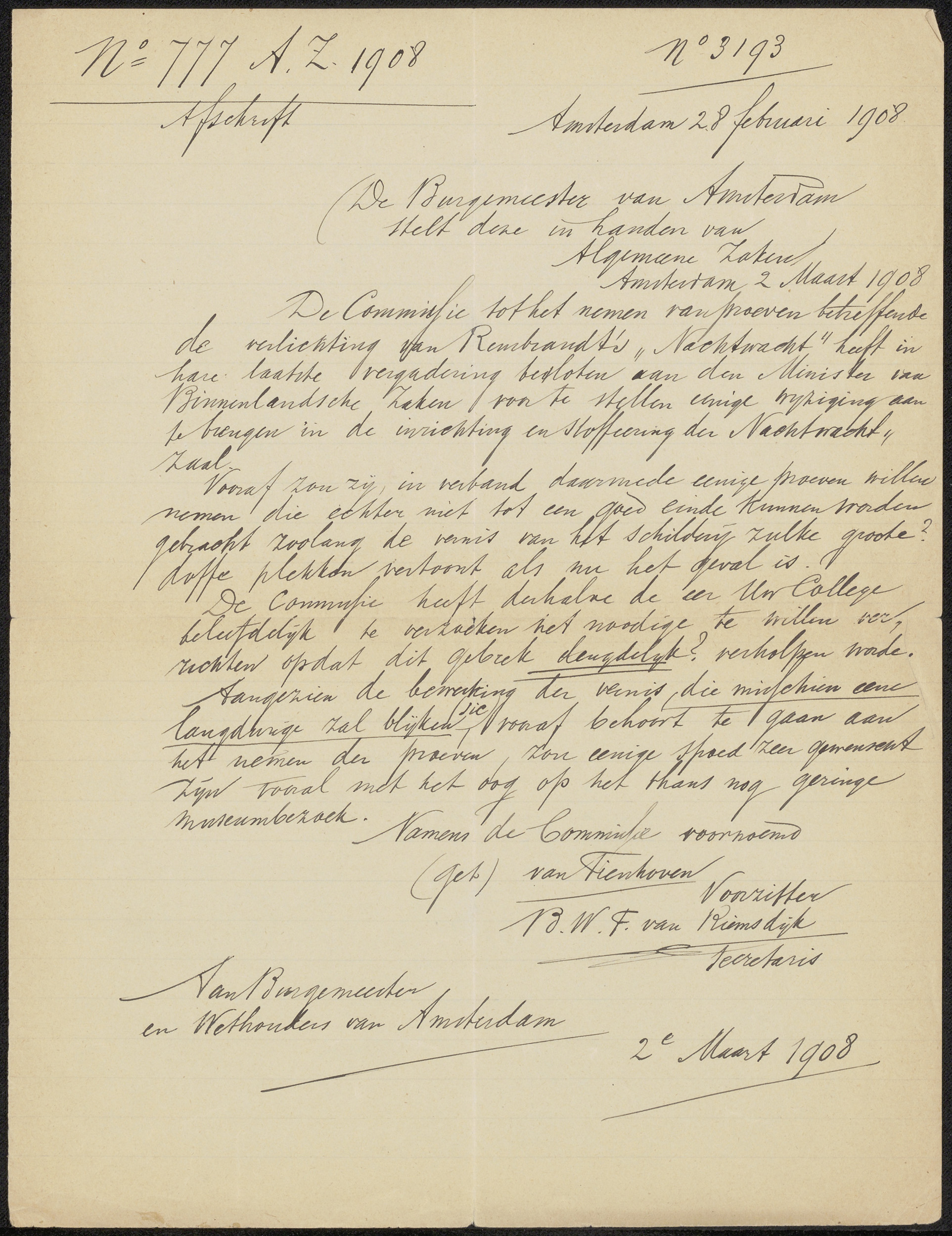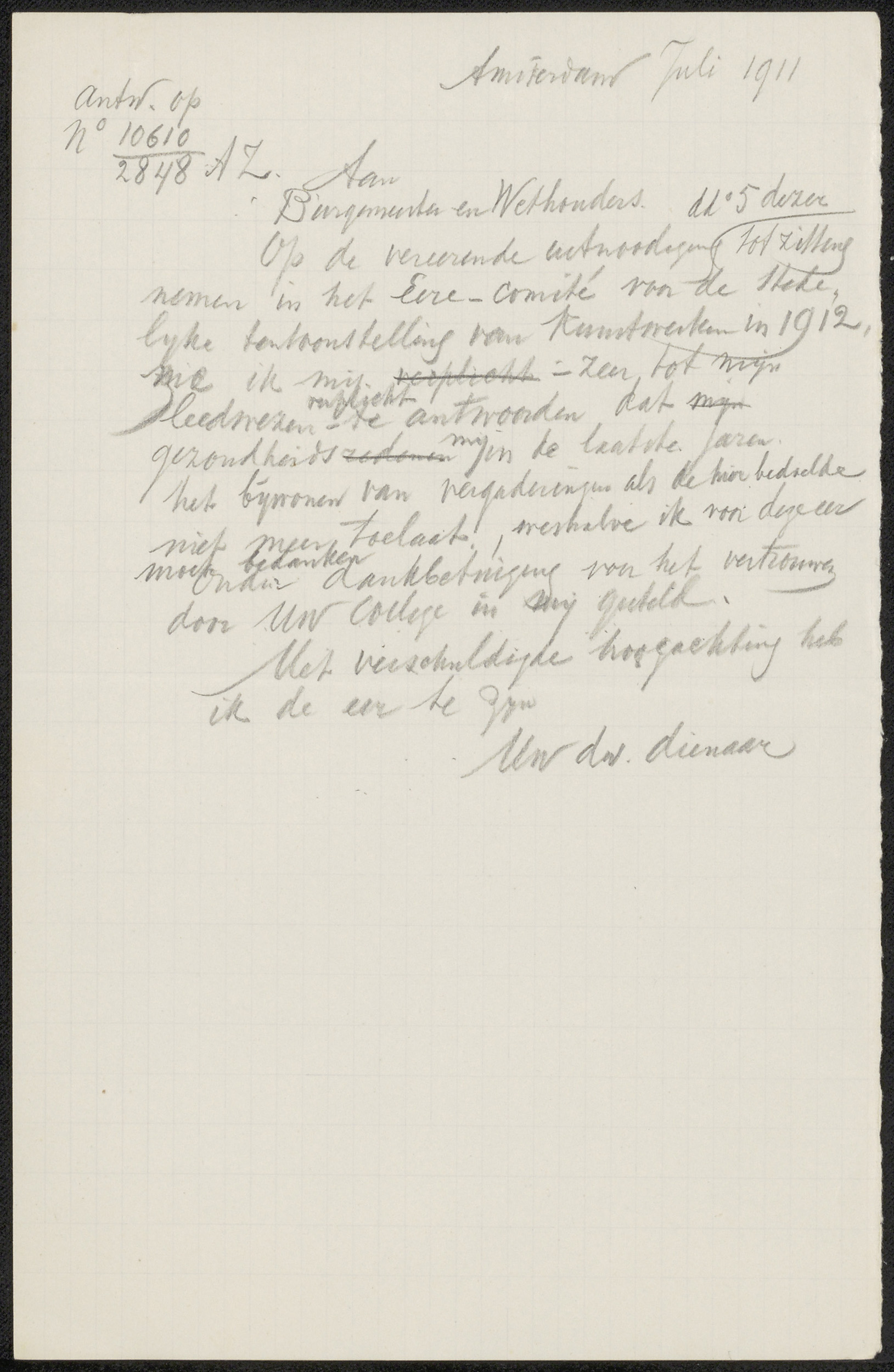 Brief aan Burgemeester en Wethouders van Amsterdam