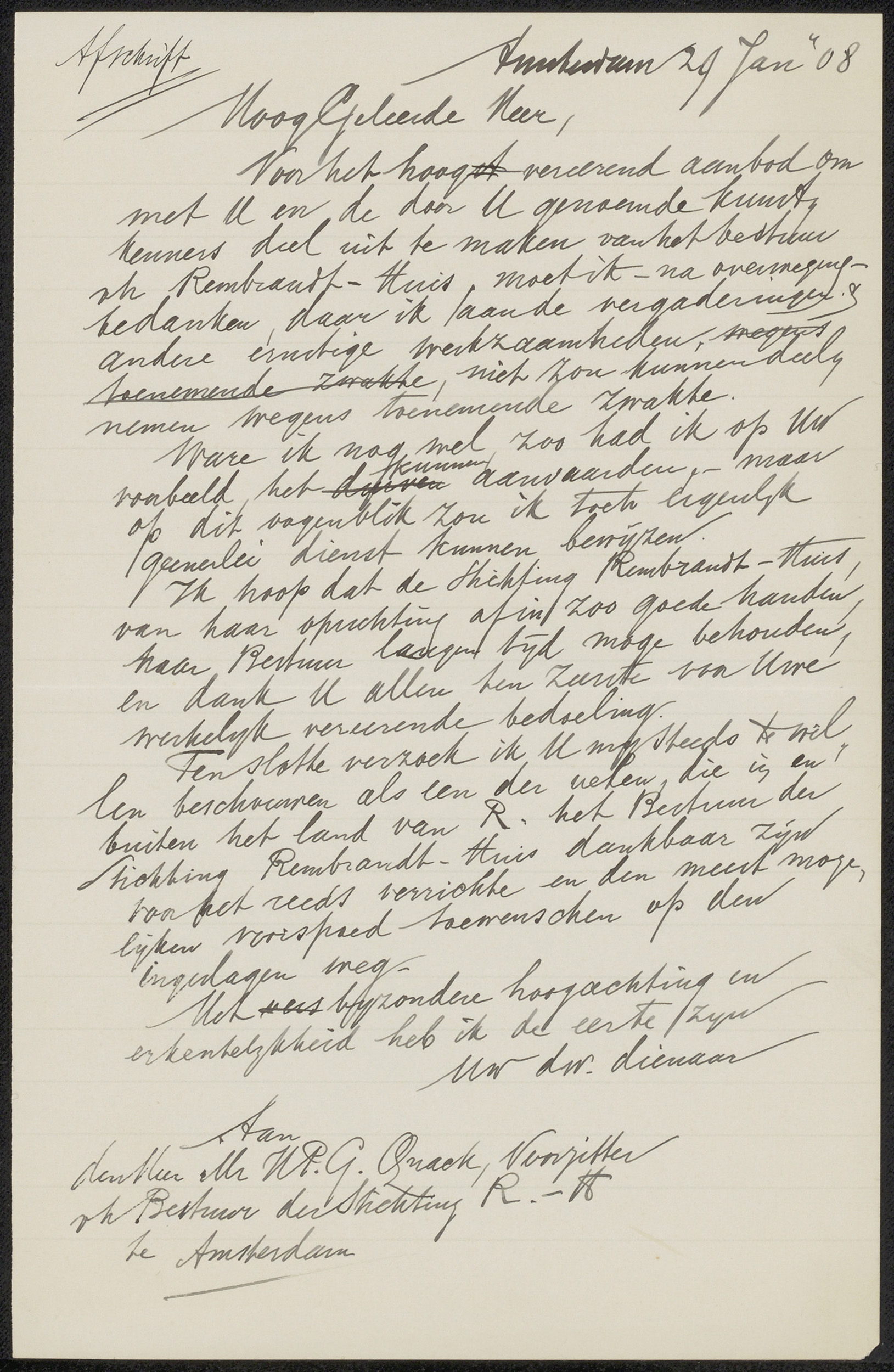 Brief aan Hendrick Peter Godfried Quack