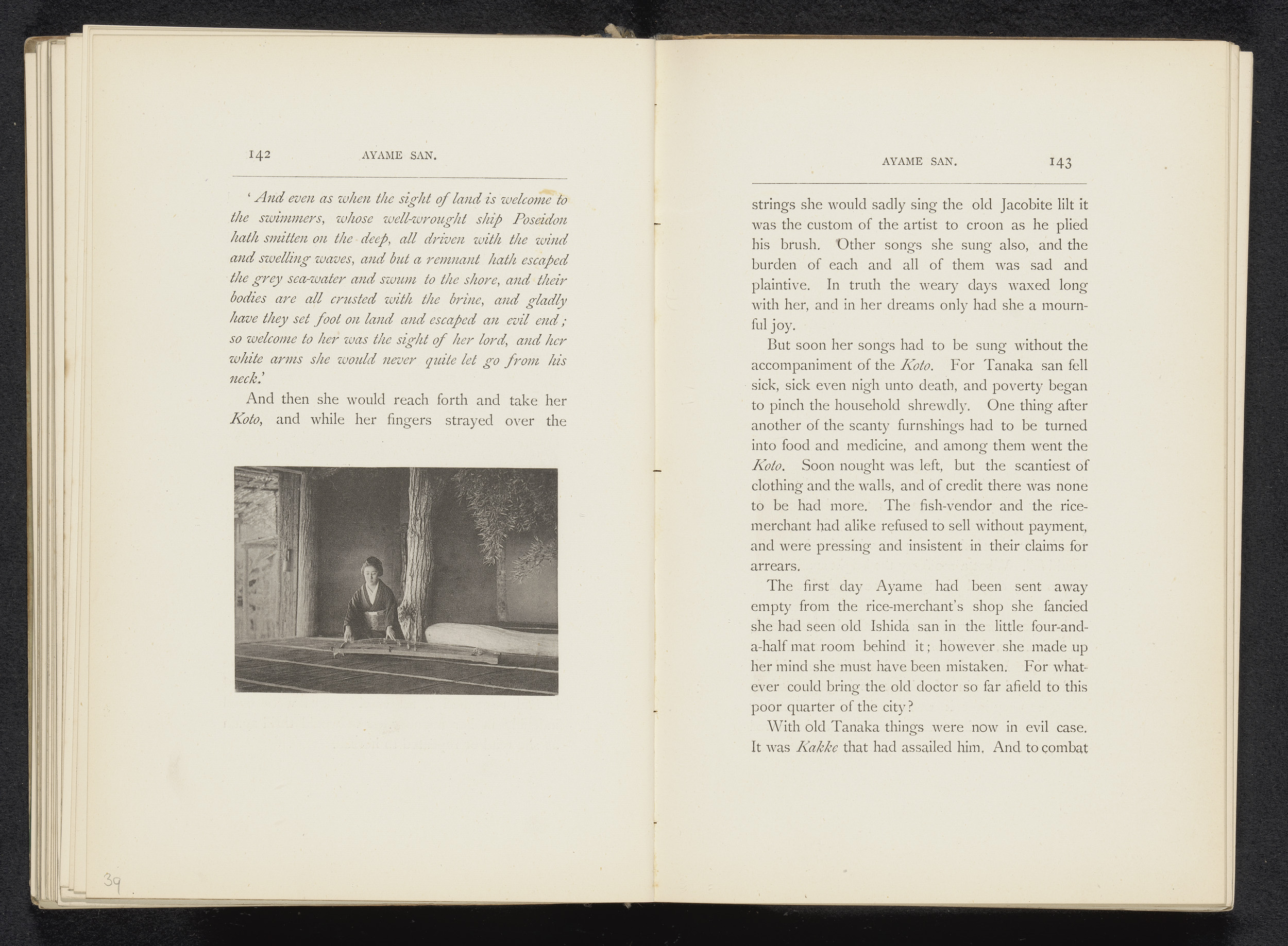 Zittende vrouw met een koto in een interieur