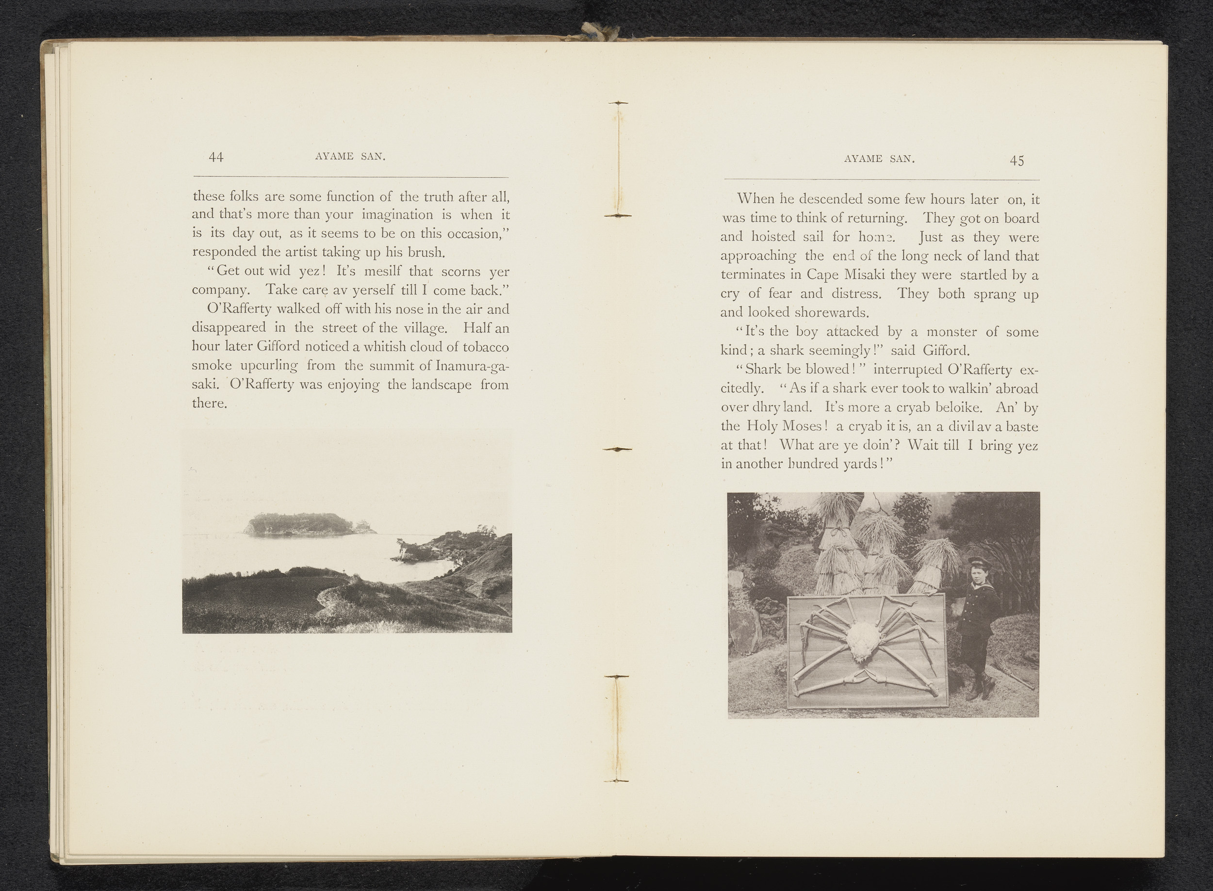 Gezicht op een kaap te Japan, met op de voorgrond boten