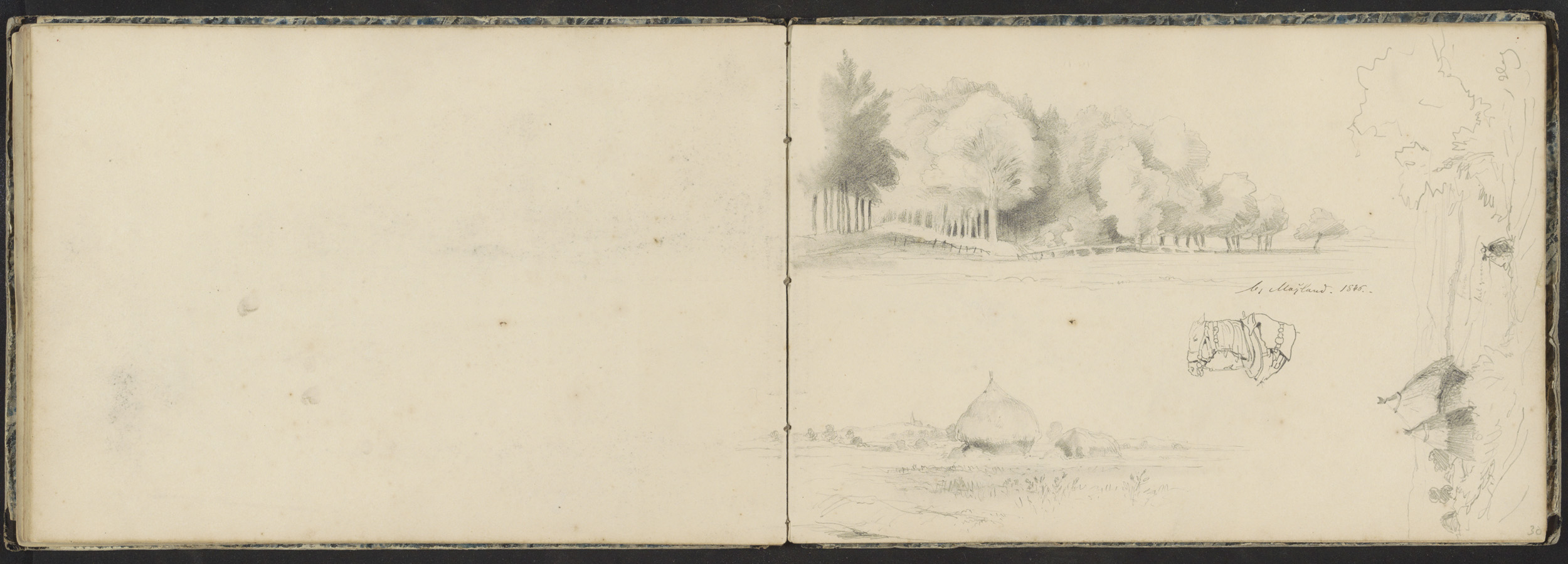 Landschappen met hooibalen en een boslandschap bij M...