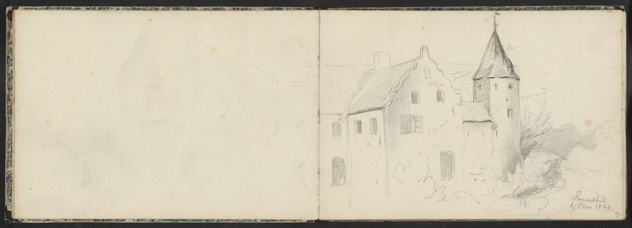 Gebouw met een toren in Rosenthal bij Kleef