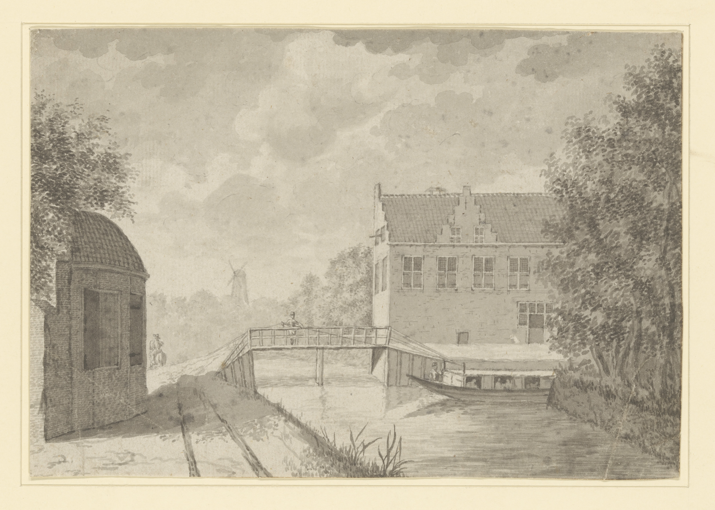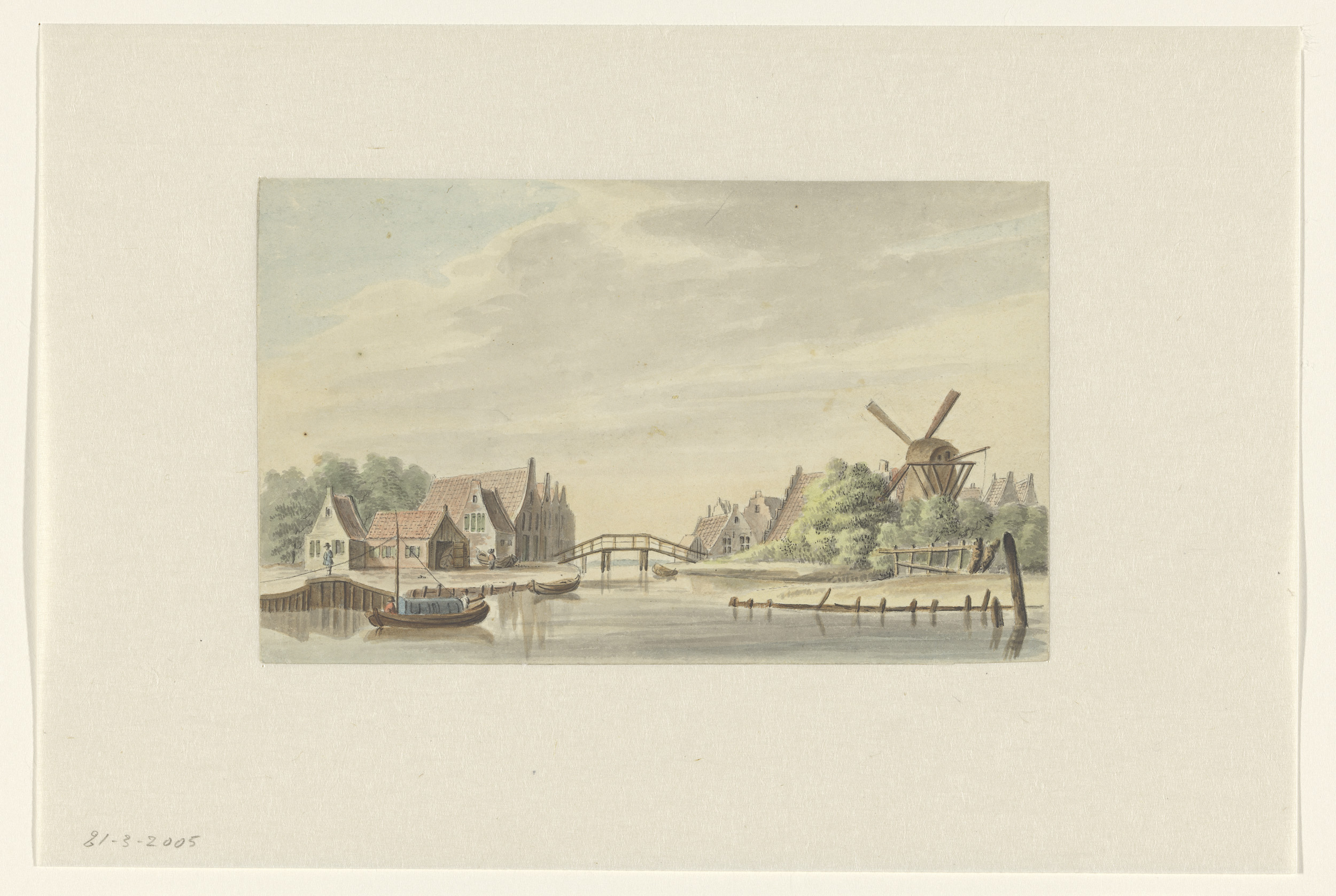 Gezicht op een brug over de trekvaart tussen Leiden ...
