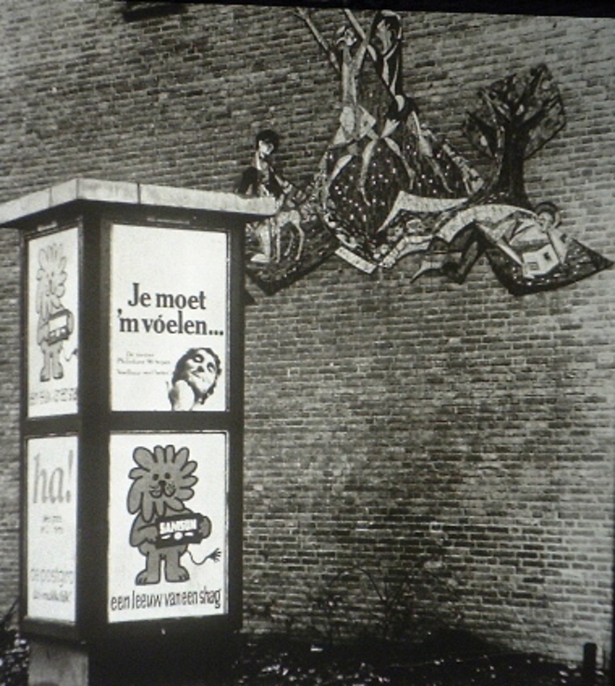 Plateel mozaiek in de Langekerkstraat.Contra Reclame...