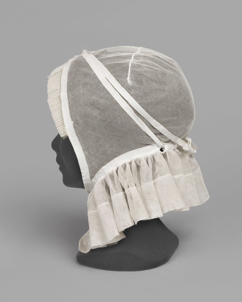 Rouwmuts uit 1880 gemaakt van witte tule die werd ge...