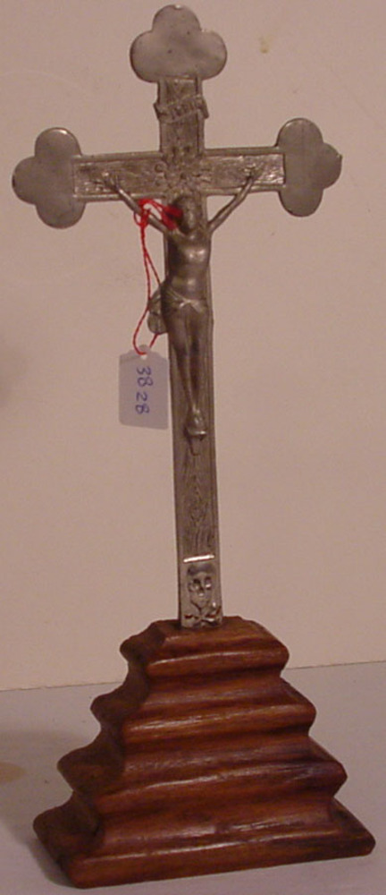 Devotiebeeld, kruisbeeld van tin op een voet van cir...