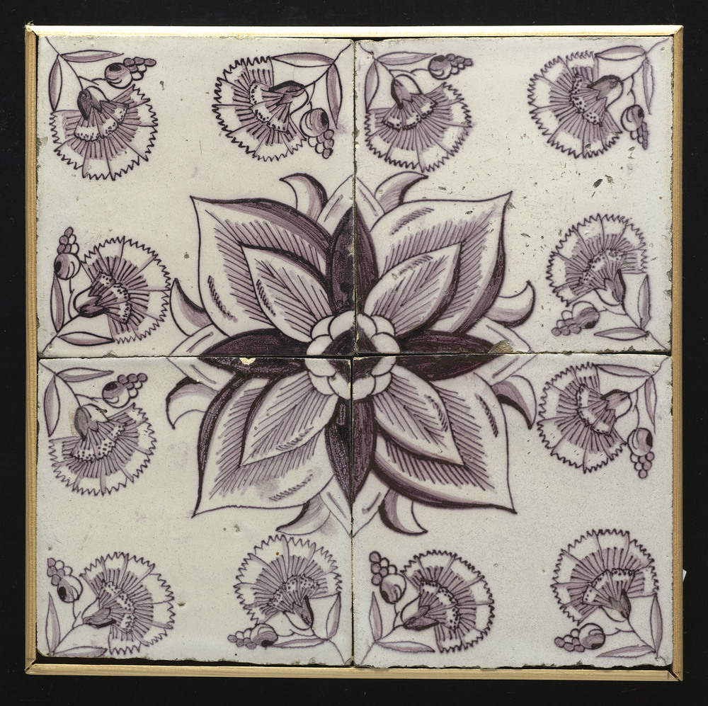Tegelveld bestaande uit vier tegels van keramiek met...