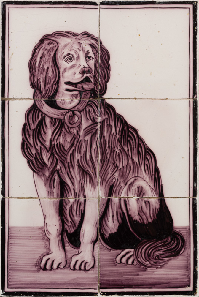 Tegeltableau in tinglazuur, met voorstelling hond, v...