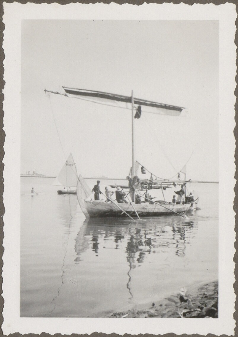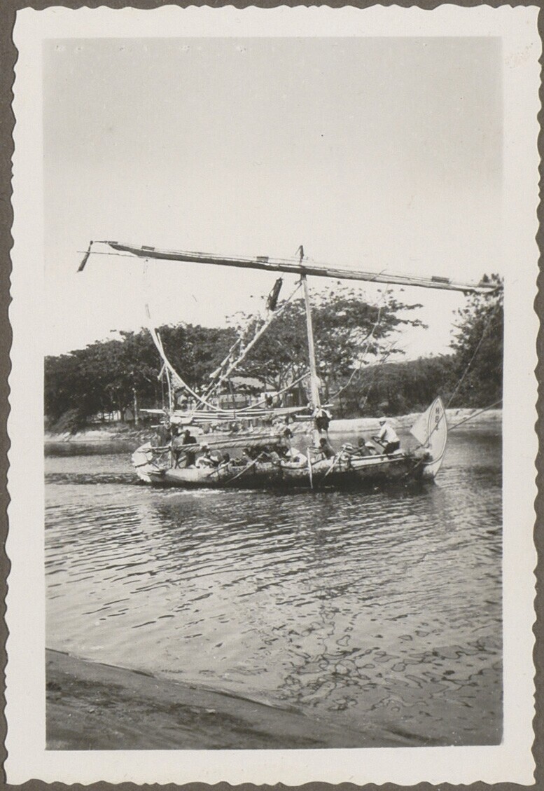 Uitzicht op een overbezette prauw
