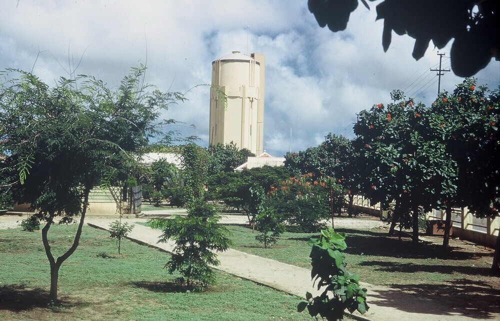 Gezicht op de watertoren in hoofdstad Oranjestad