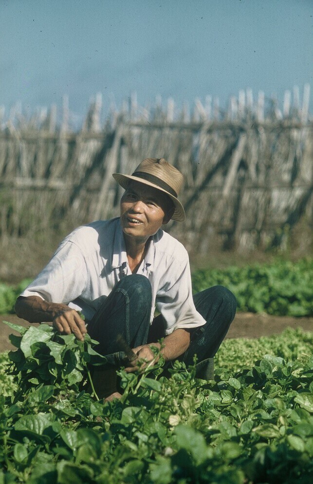 Landarbeider in zijn groententuin