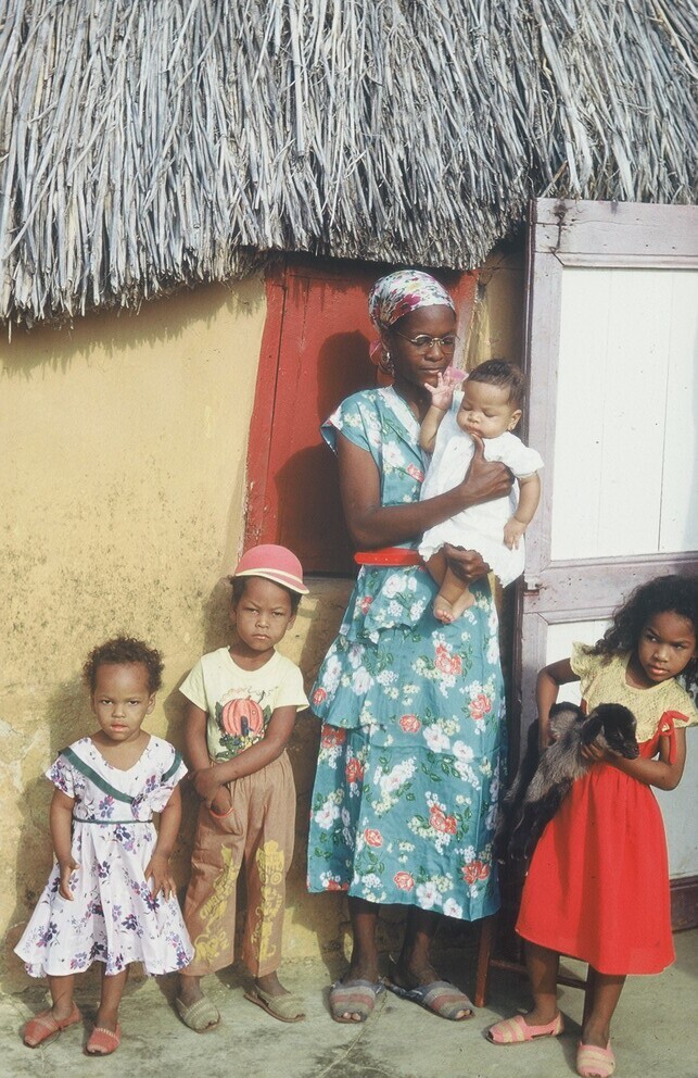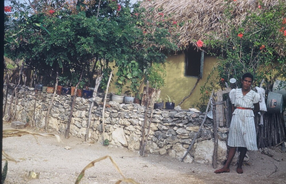 Een Bonairiaanse vrouw voor haar woning