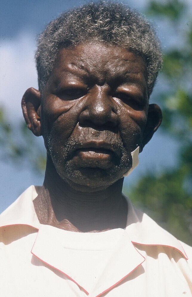 Lepra patiënt op de Leprakolonie Zaquito