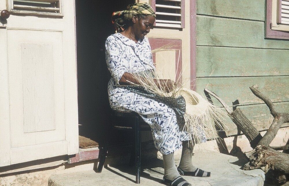 Een hoedenvlechtster voor haar woning