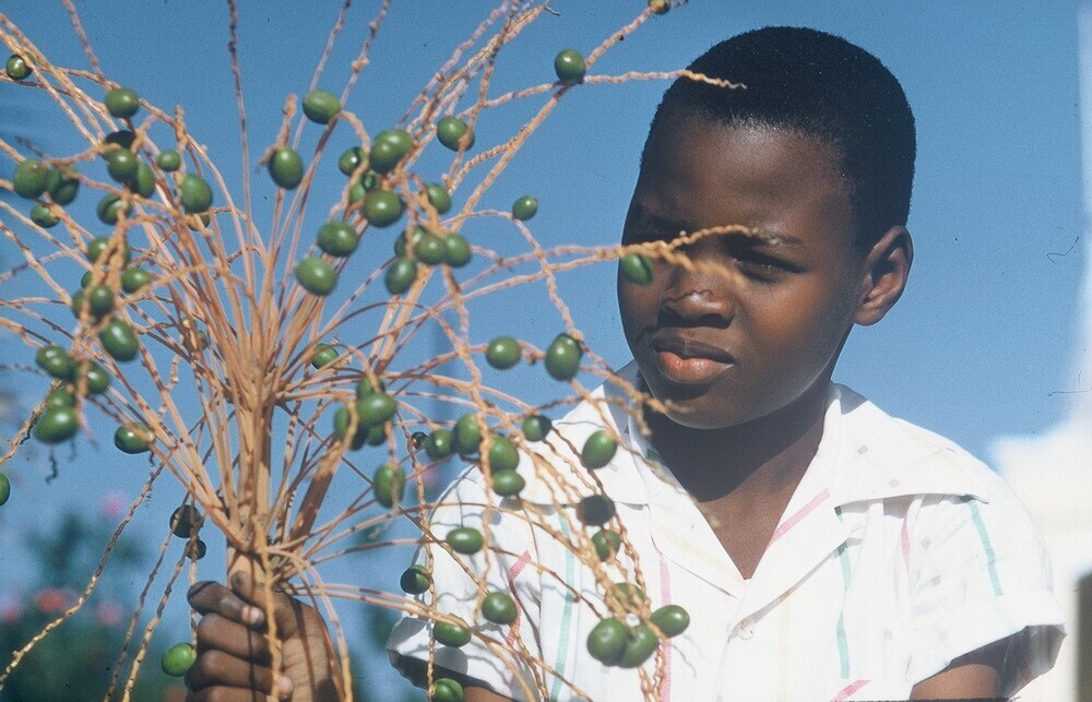 Een jongen met rijpende dadels