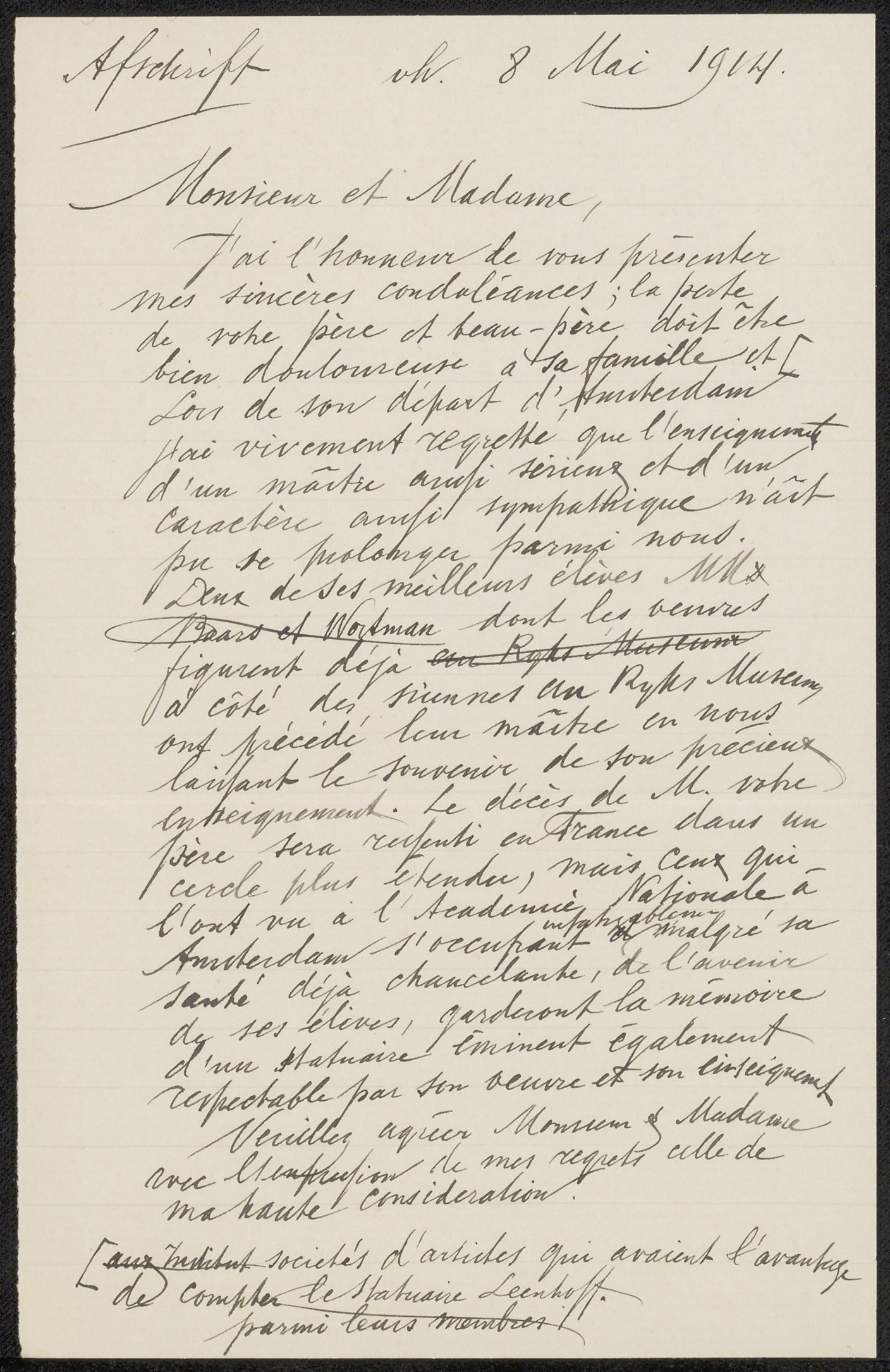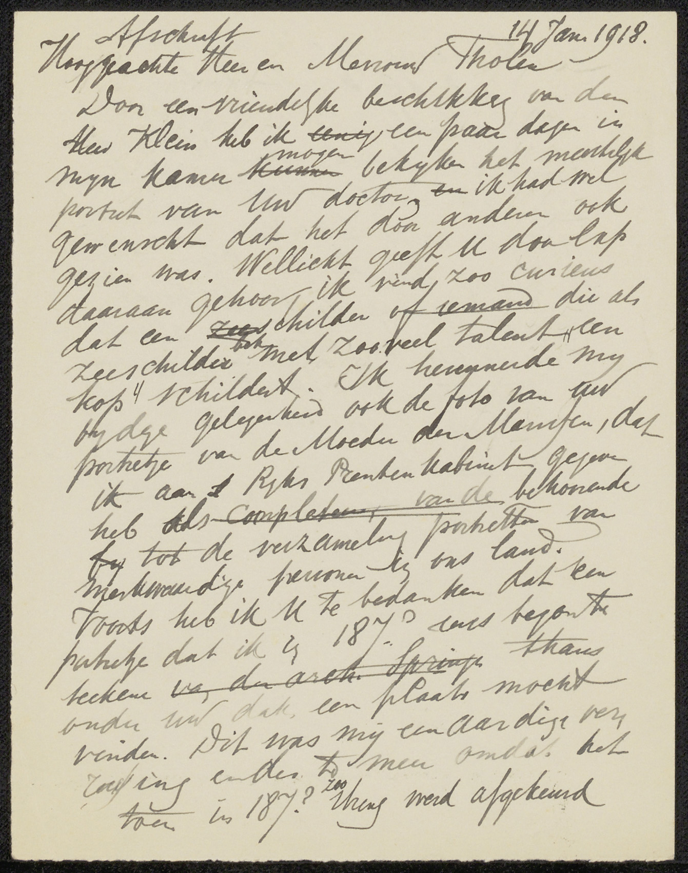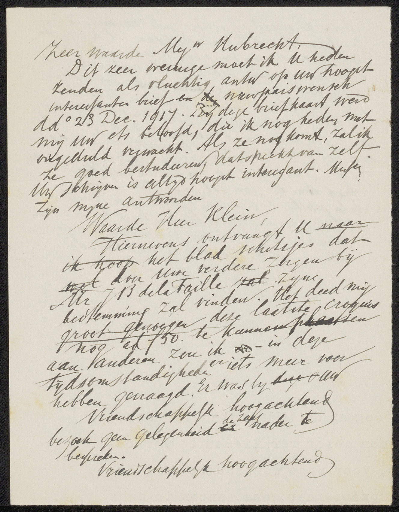Conceptbrief aan de heer Klein en mevrouw Klein-Mare...