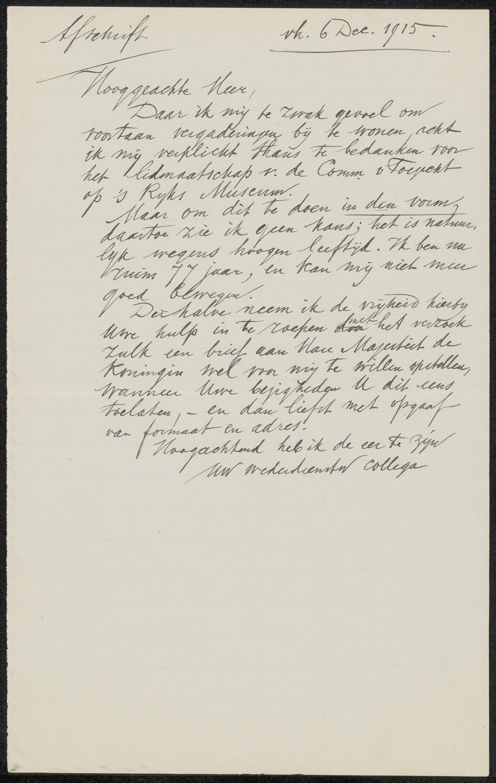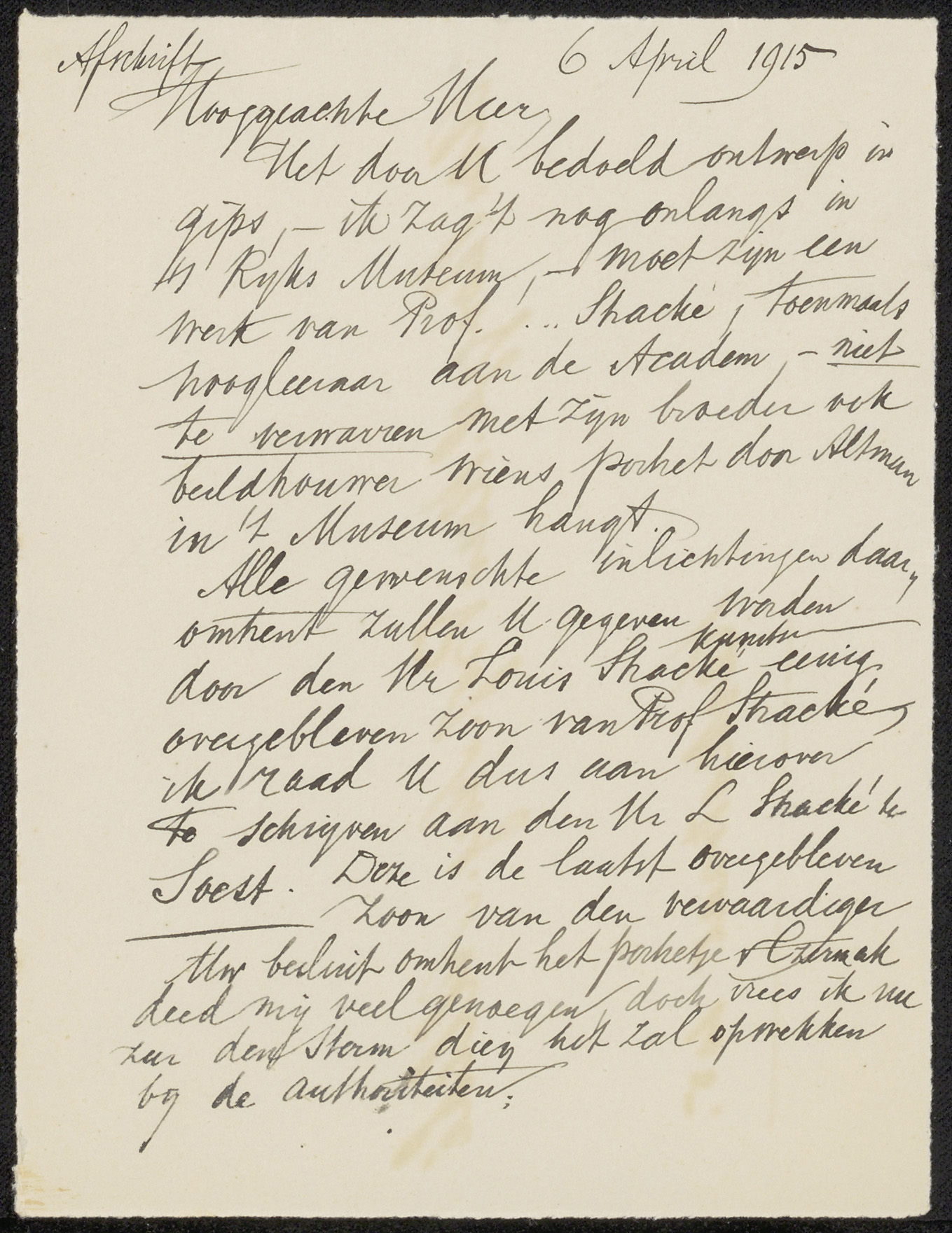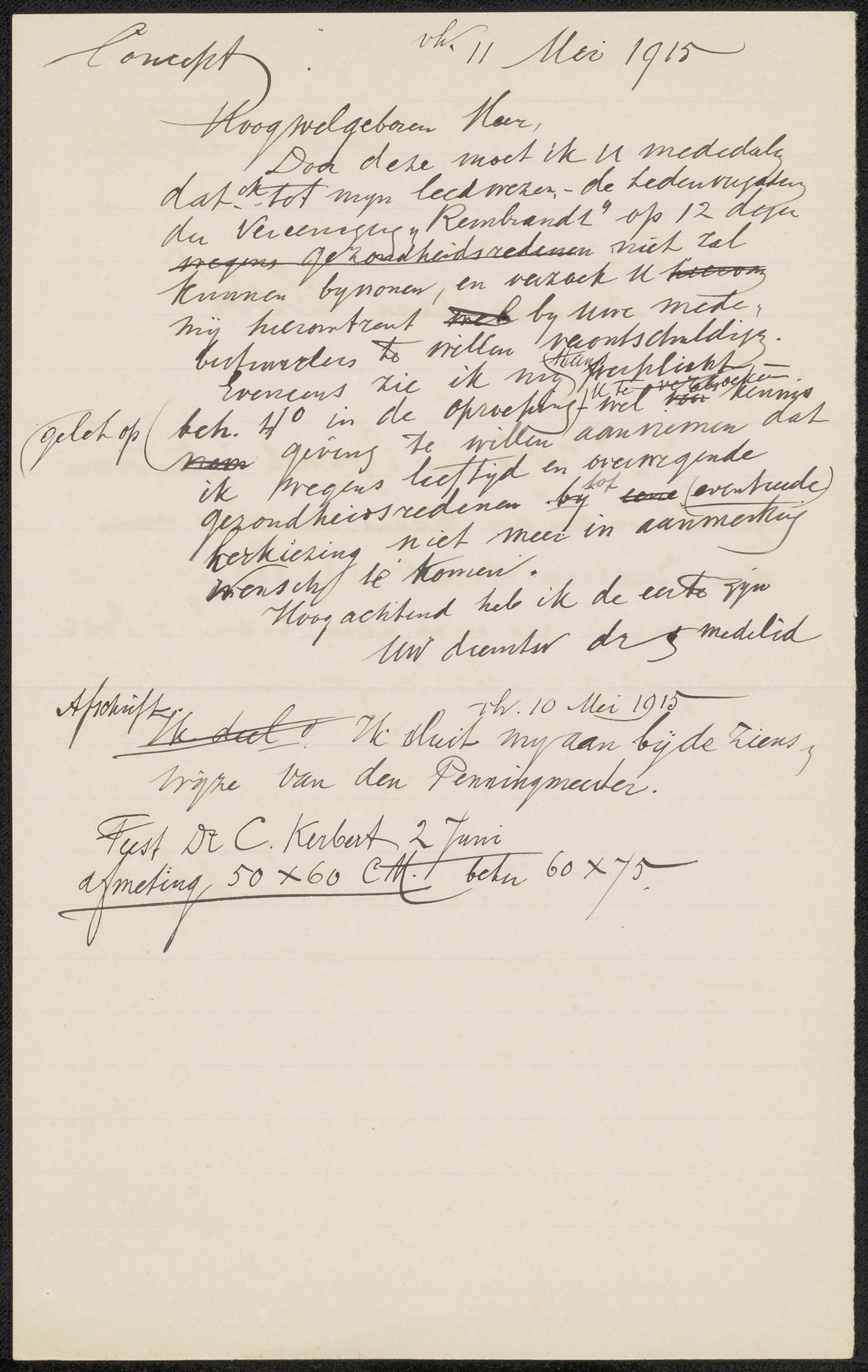 Conceptbrief aan Carel Lodewijk Dake