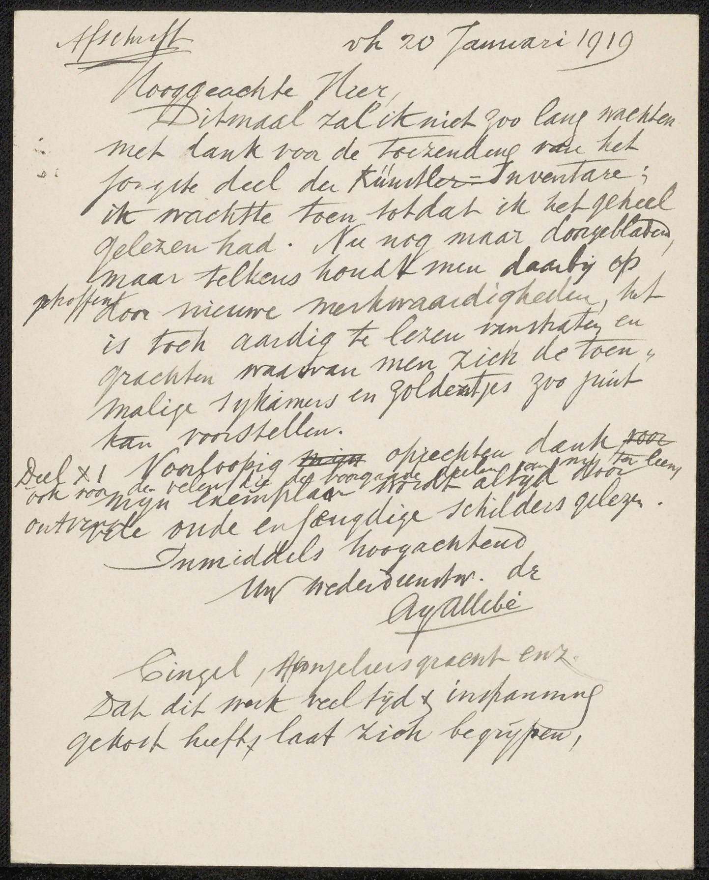 Brief aan jonkheer Hendrik Teding van Berkhout (1879...