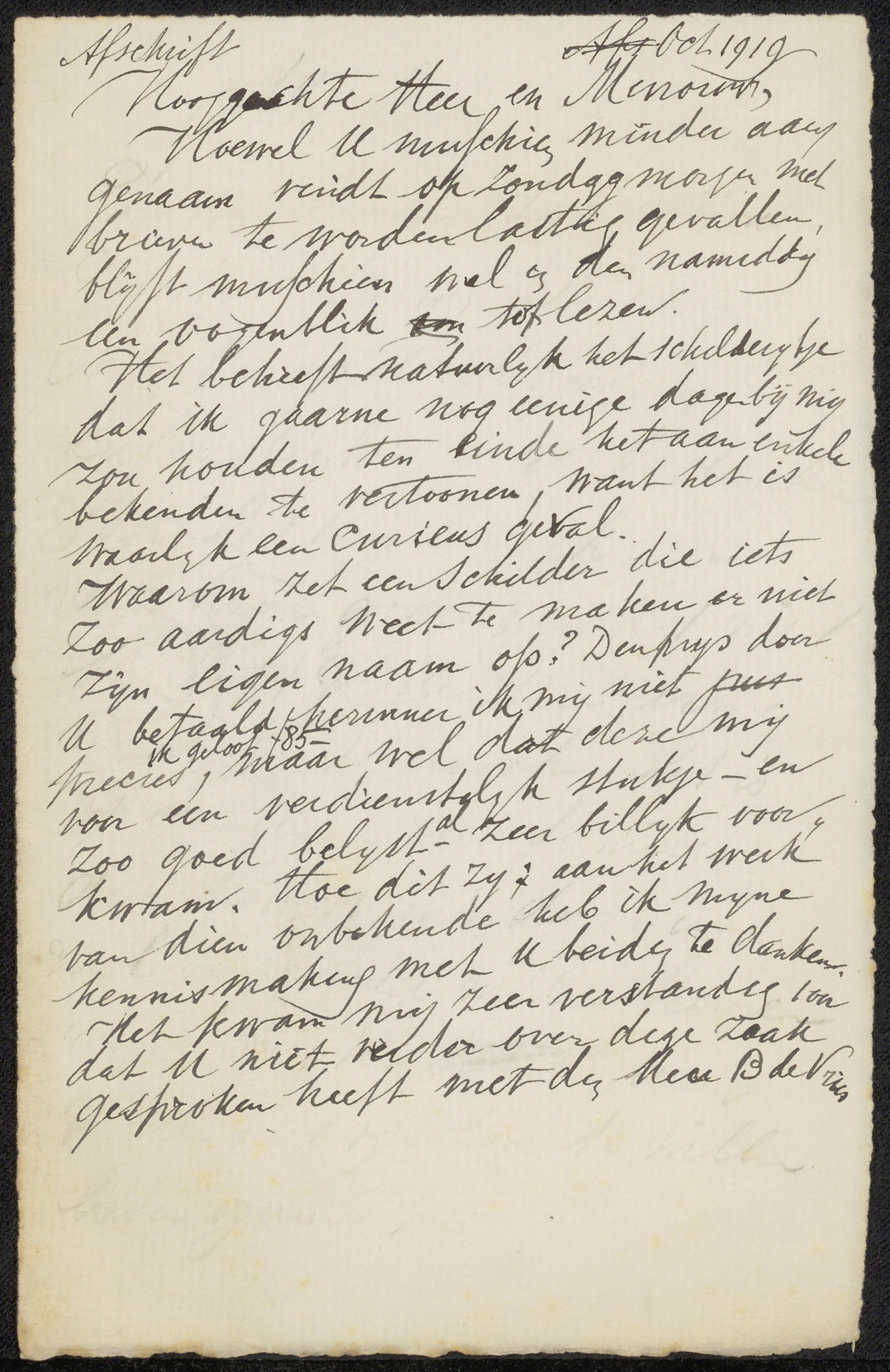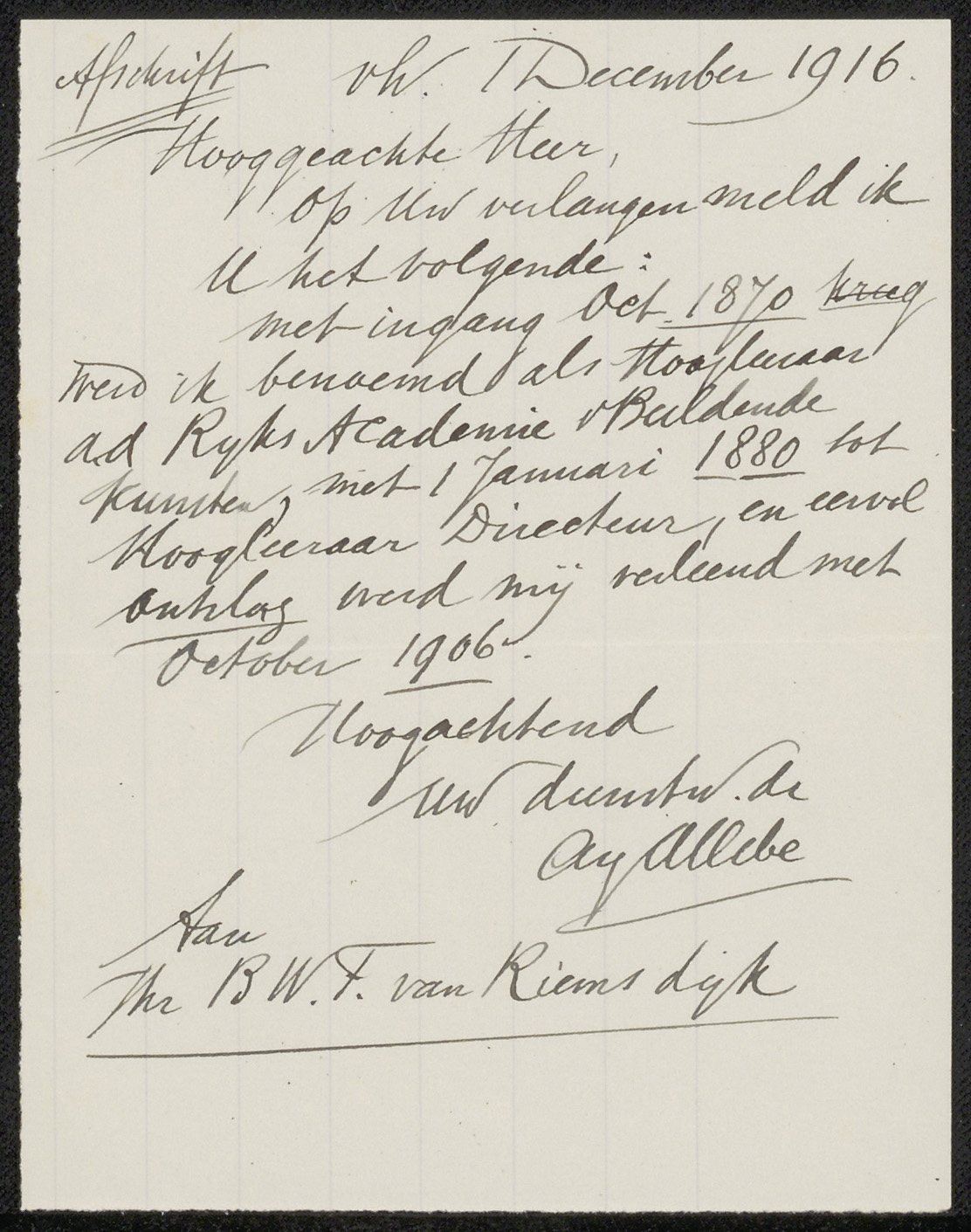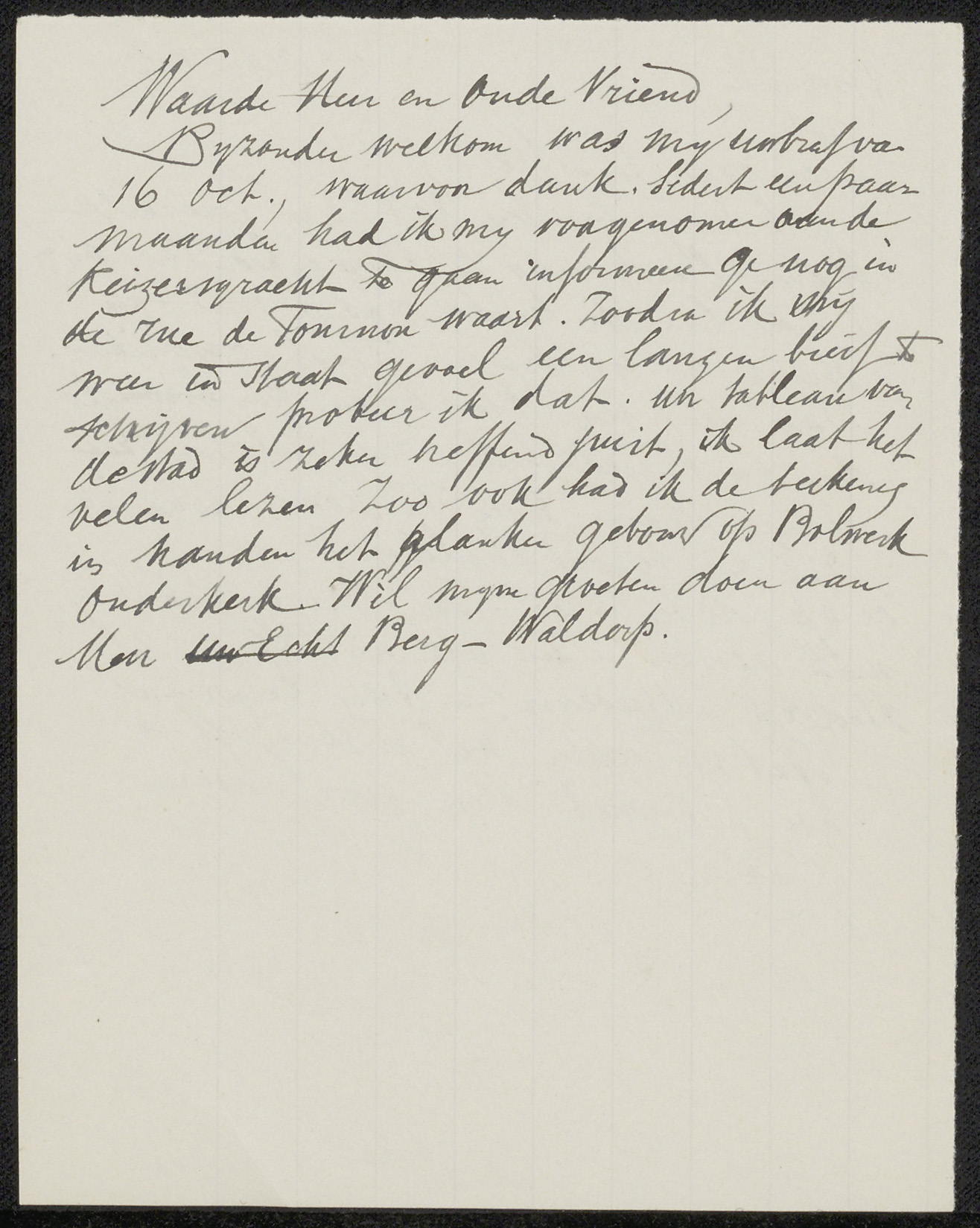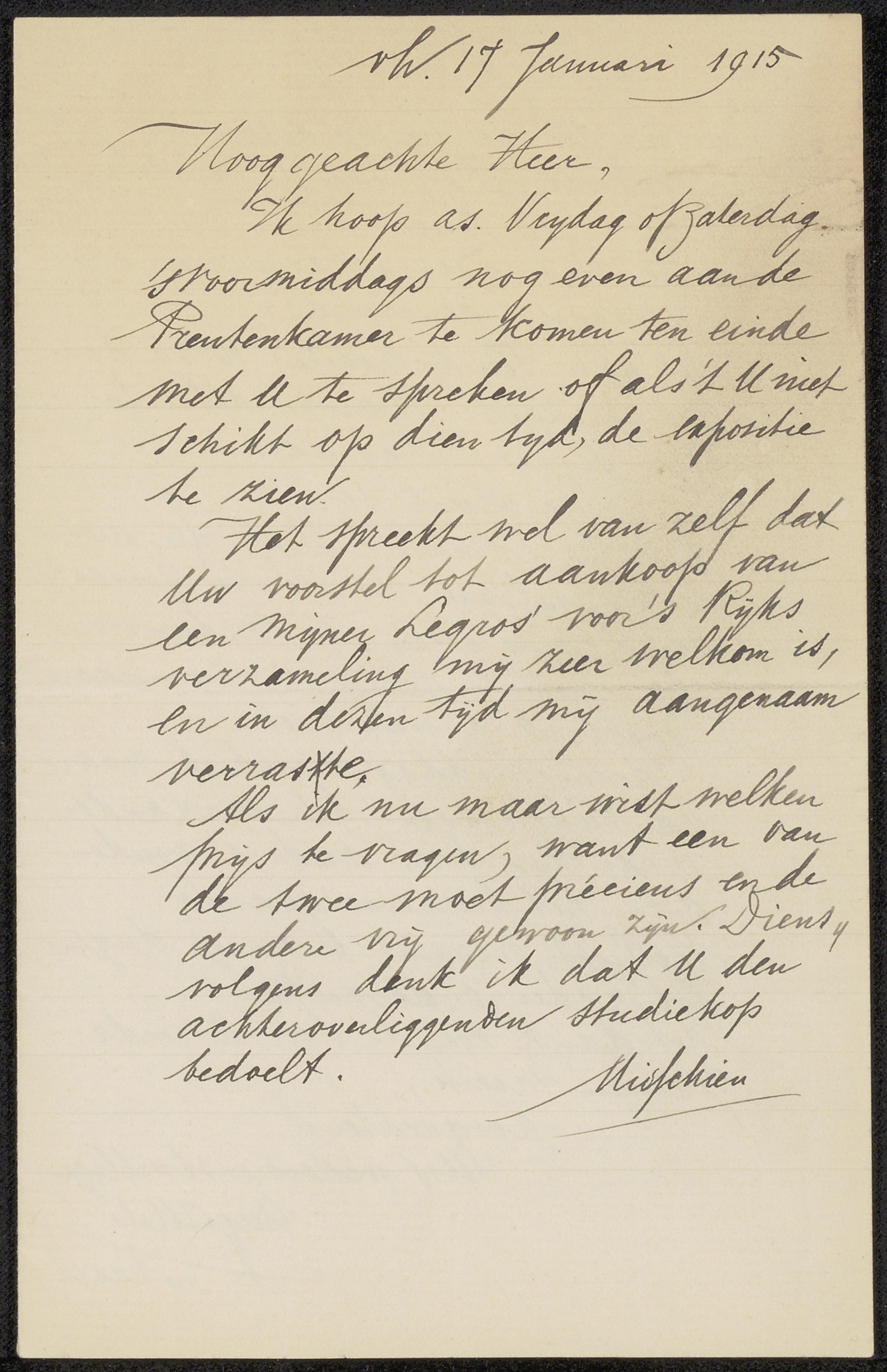 Brief aan jonkheer Barthold Willem Floris van Riemsdijk
