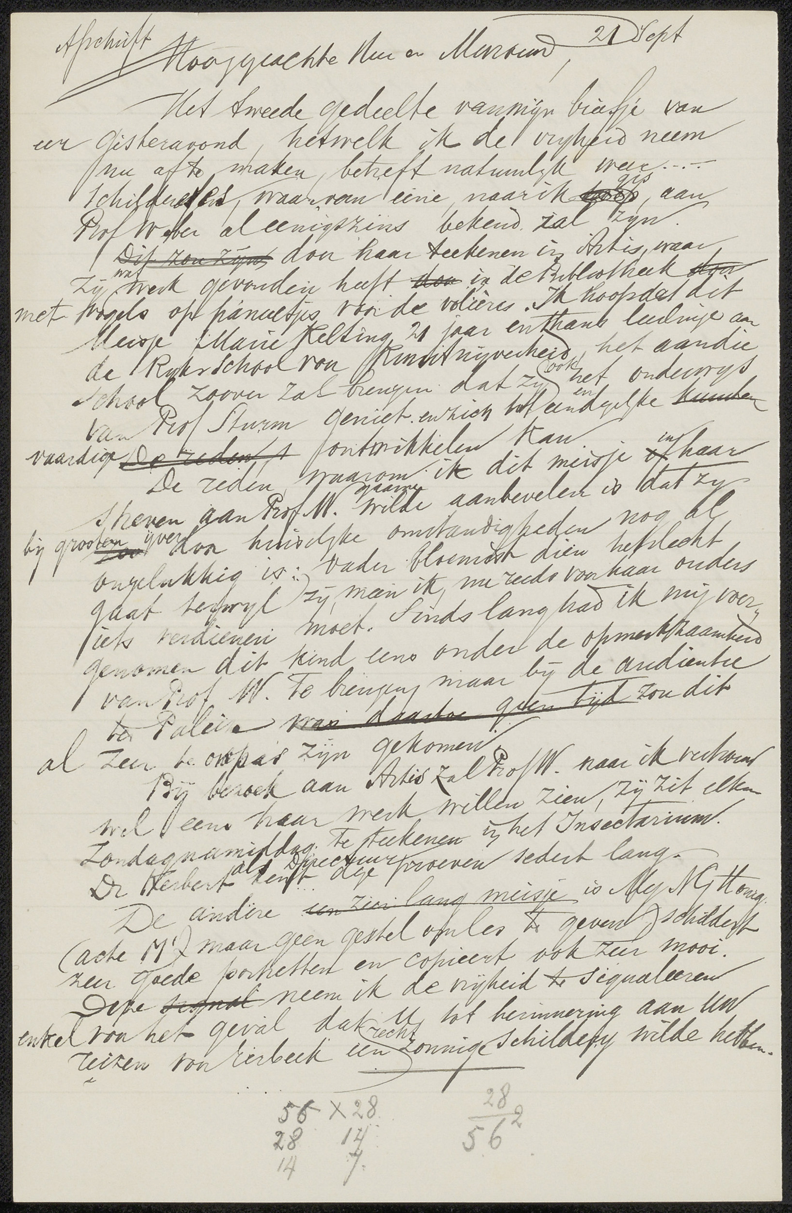 Conceptbrief aan Marie Kelting en conceptbrief aan a...