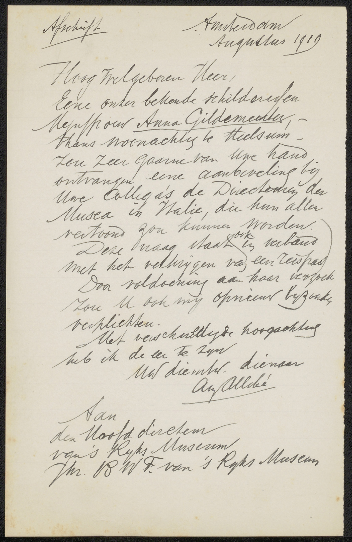 Brief aan Anna Allebé
