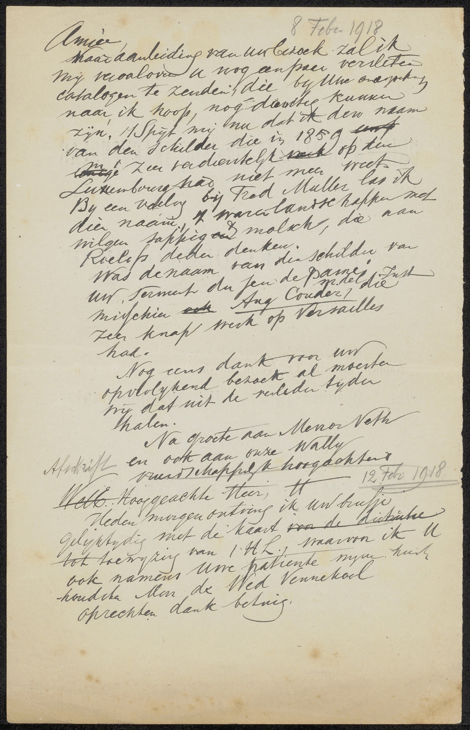 Conceptbrief aan Jan Veth en conceptbrief aan anoniem