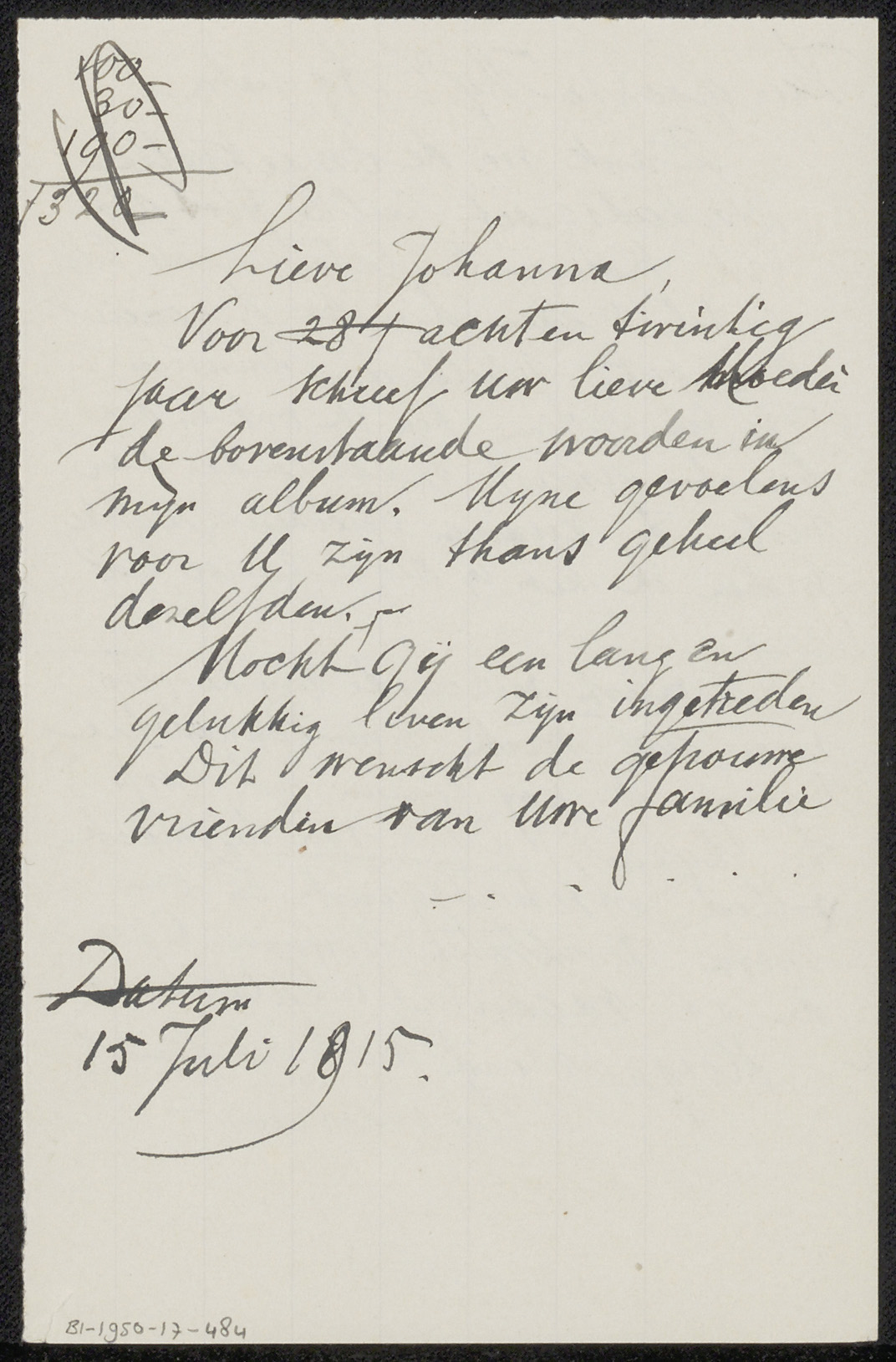 Brief aan Anne Antoinette Weber-Van Bosse