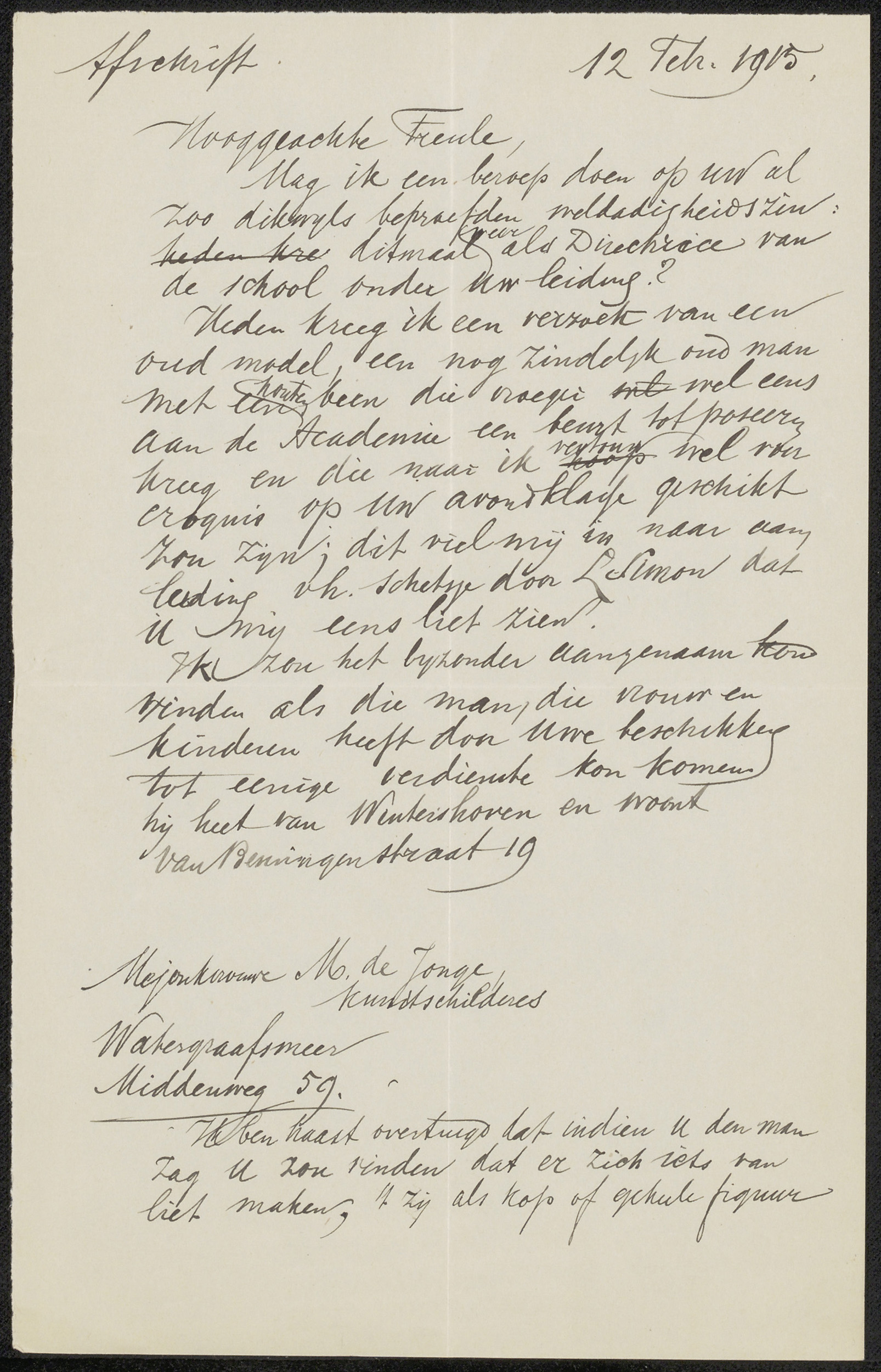 Brief aan Marie de Jonge