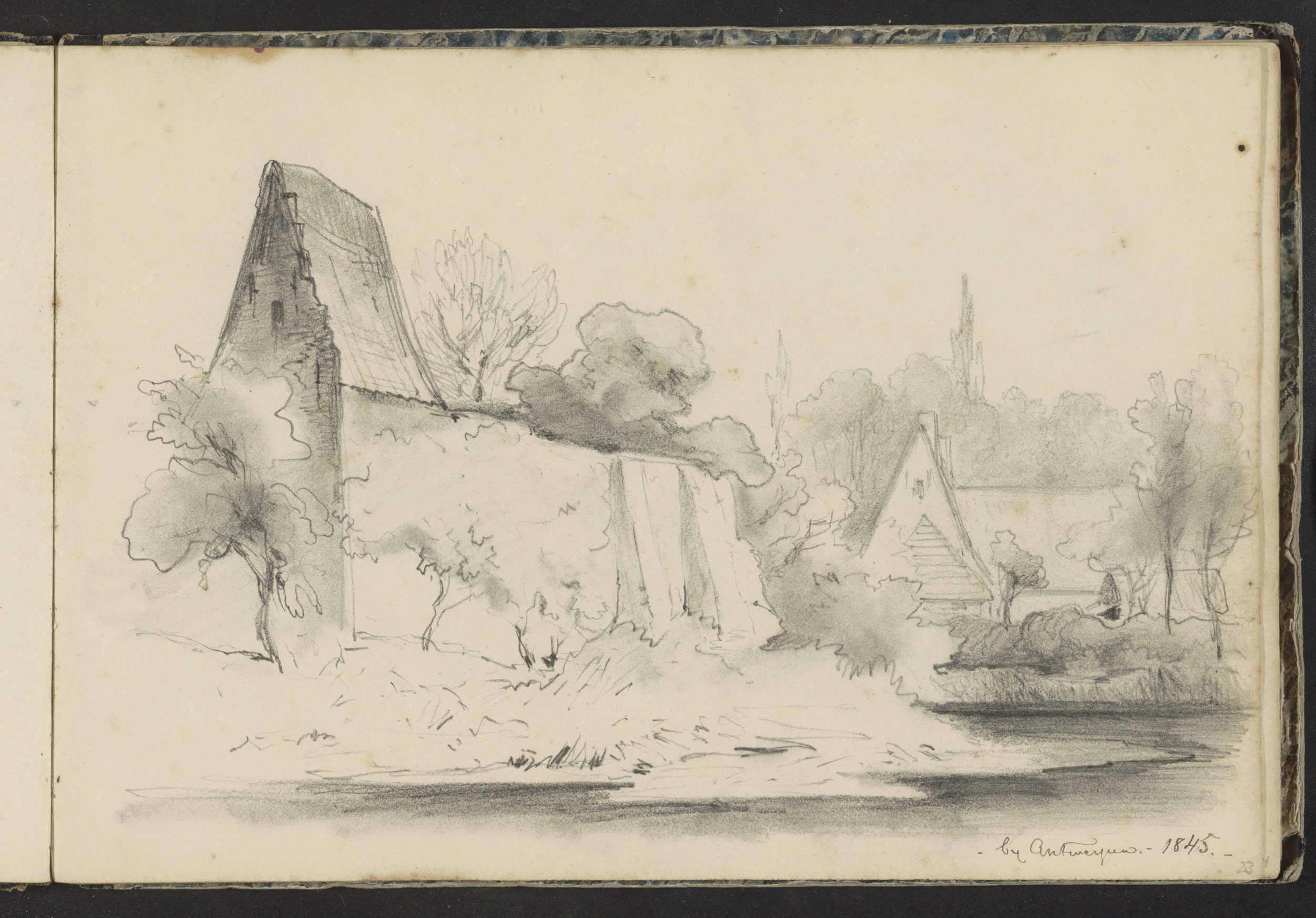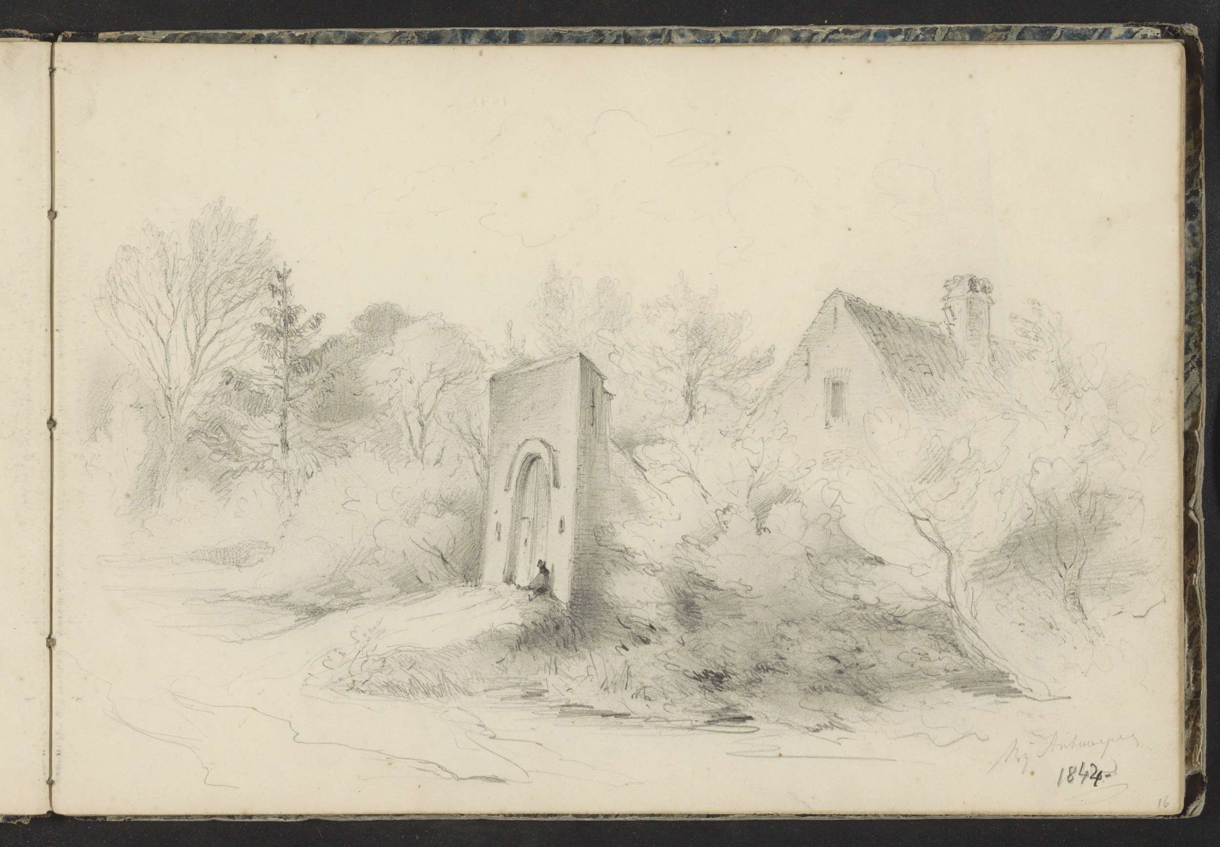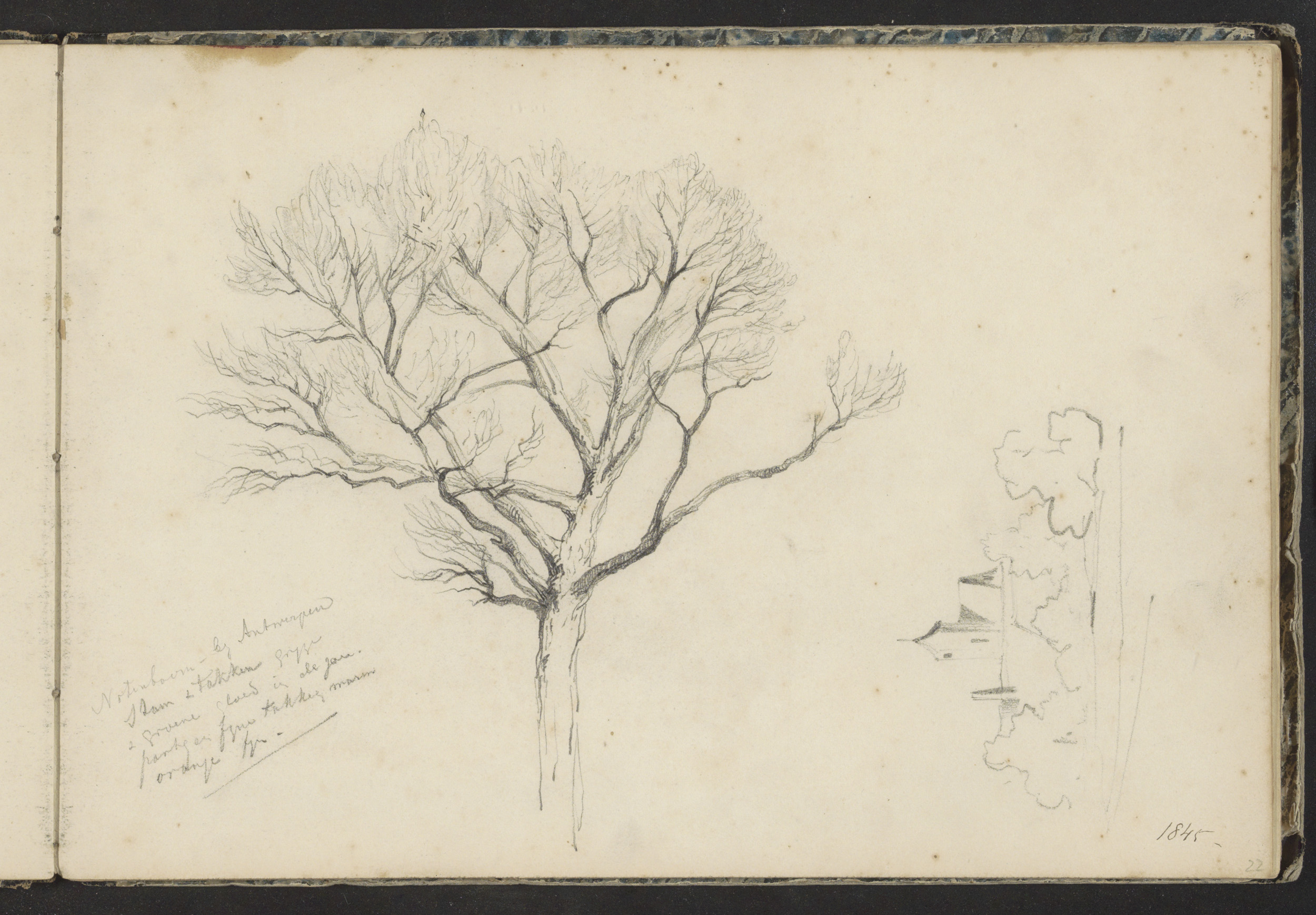 Notenboom bij Antwerpen en een stadsgezicht met een ...