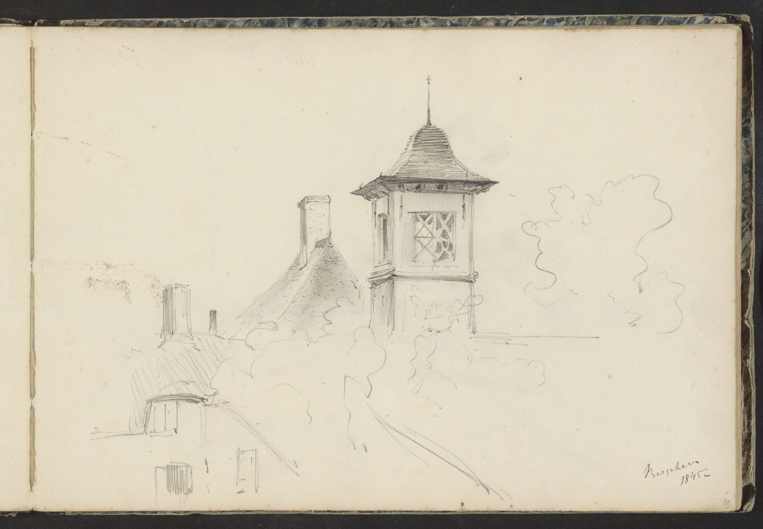 Toren en daken met schoorstenen in Berchem bij Antwe...