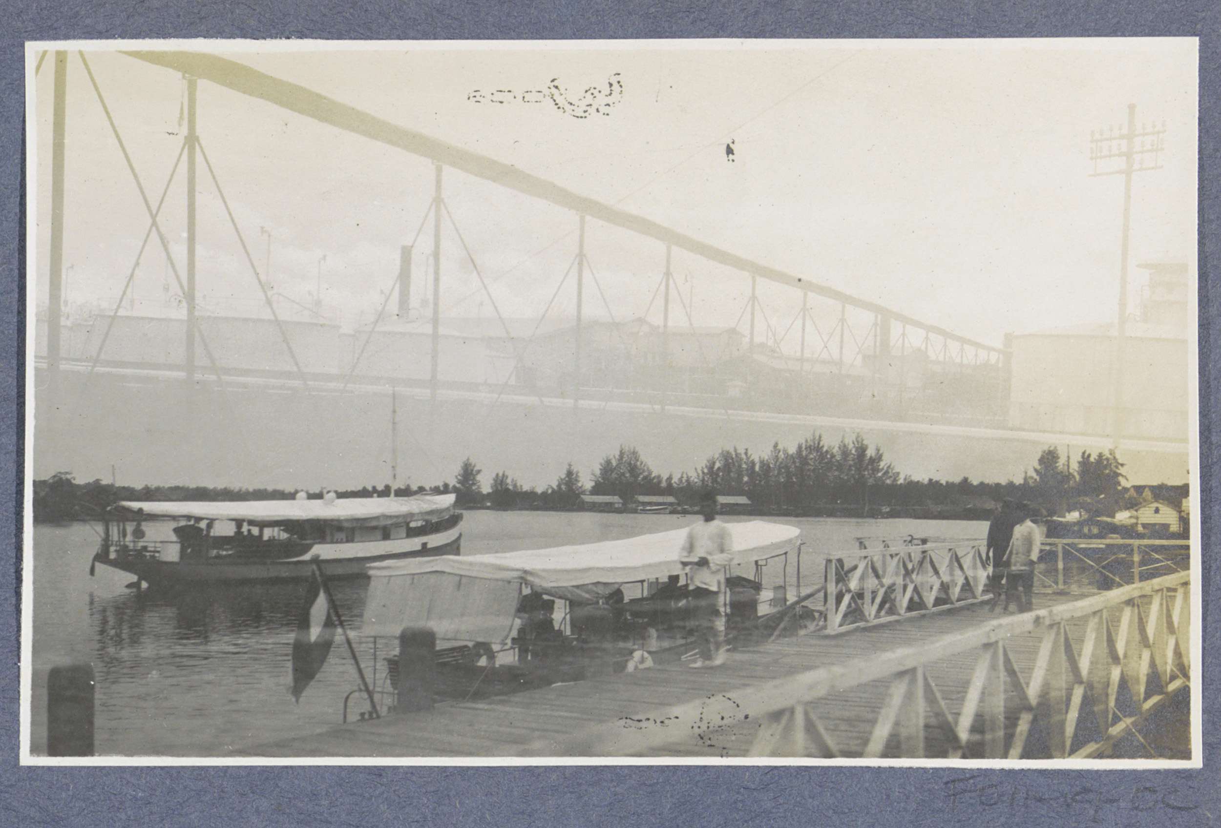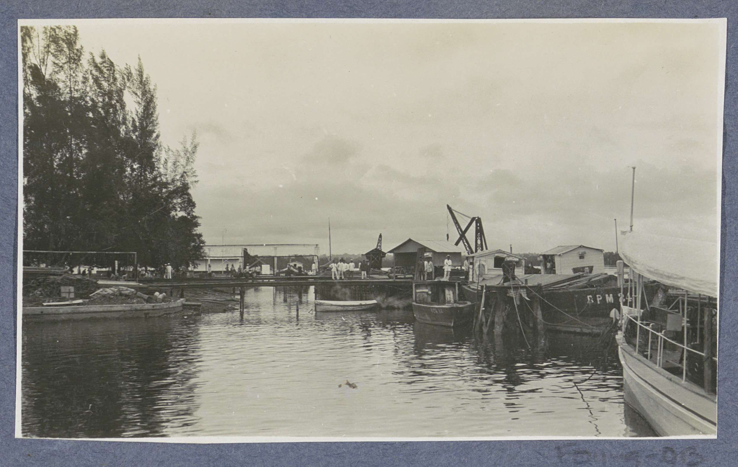 Boten aan een steiger te Pangkalan-Brandan op Sumatra