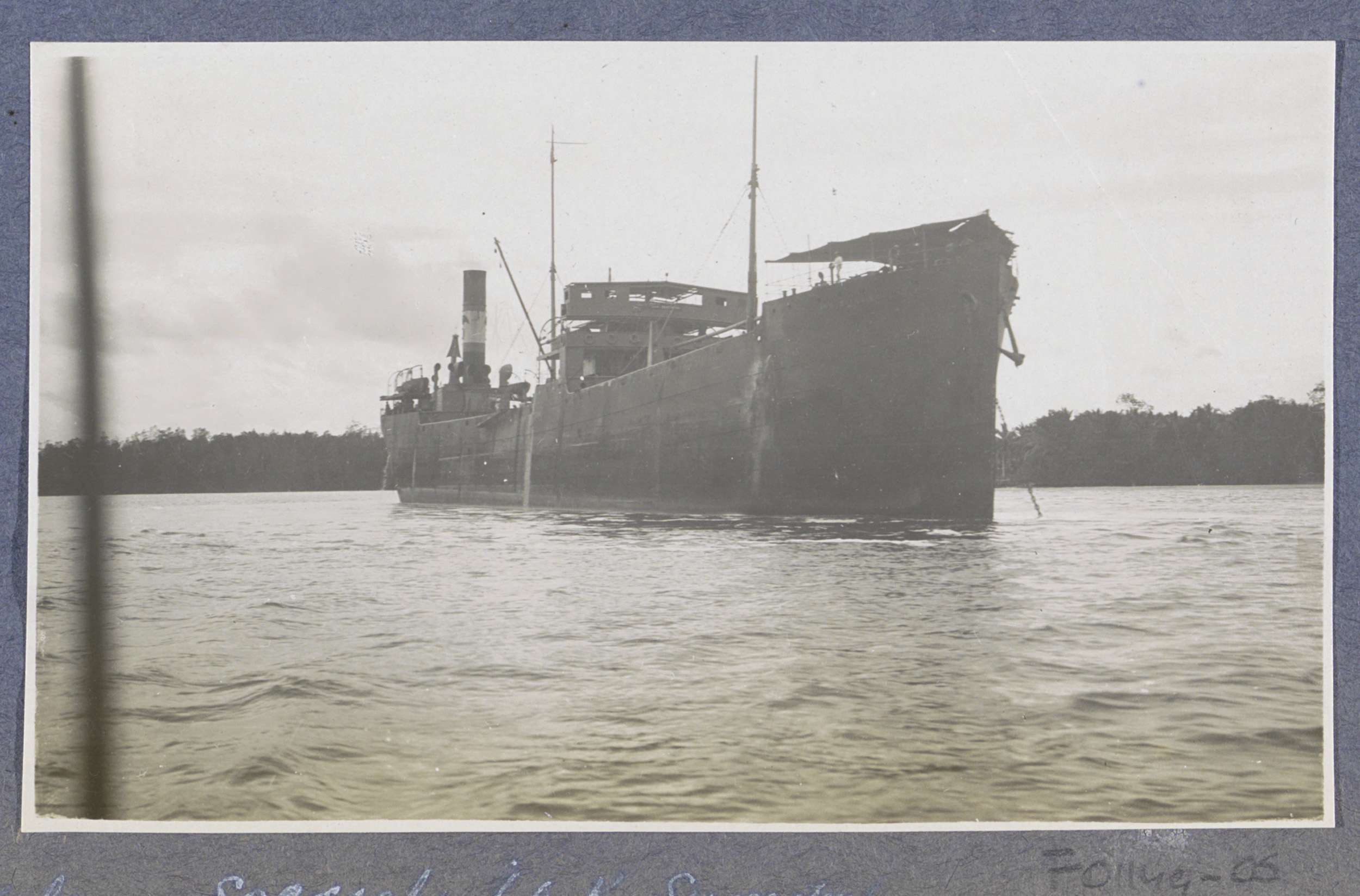 Schip voor anker bij Pangkalansusu op Sumatra