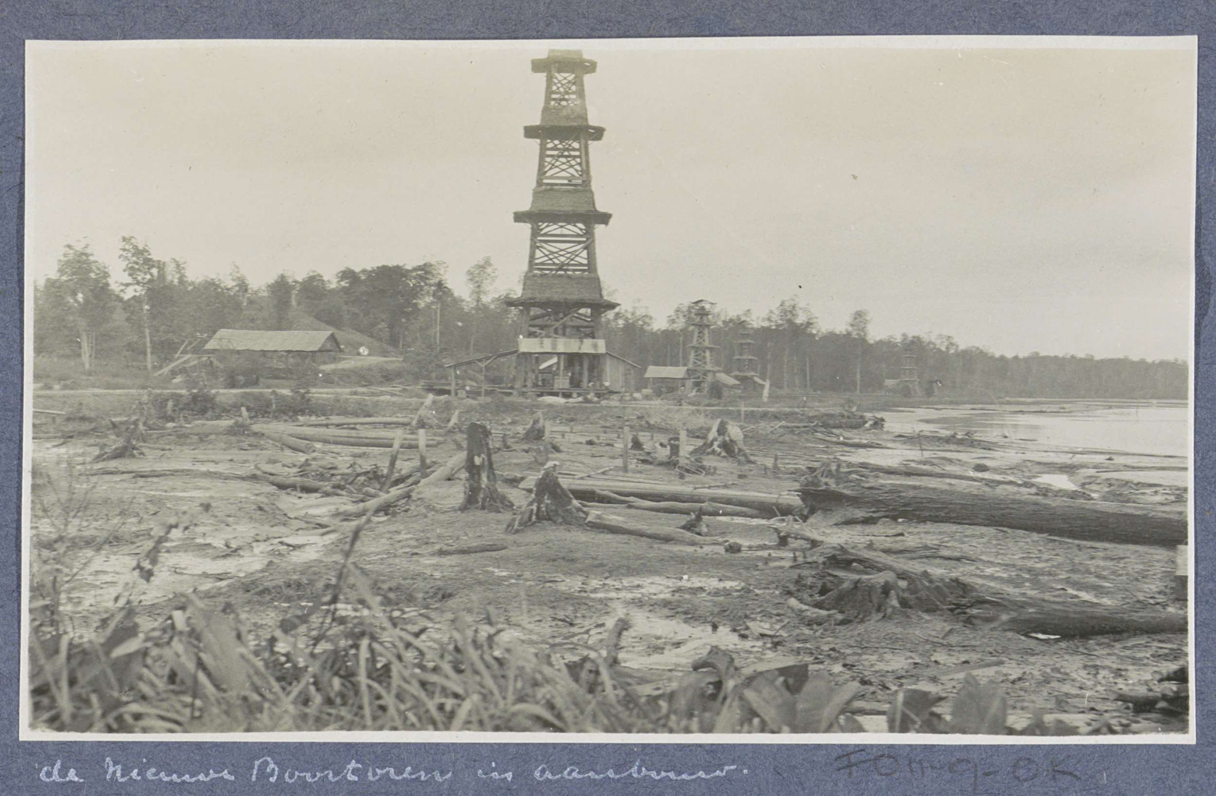 Boortoren in aanbouw in gekapt bos te Pangkalansusu ...